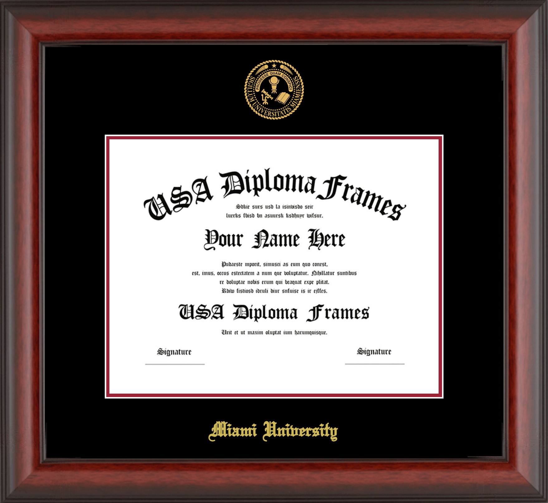 Miami University of Ohio Diploma Frame – Cherry Mahogany Matte – Black and Crimson Mat