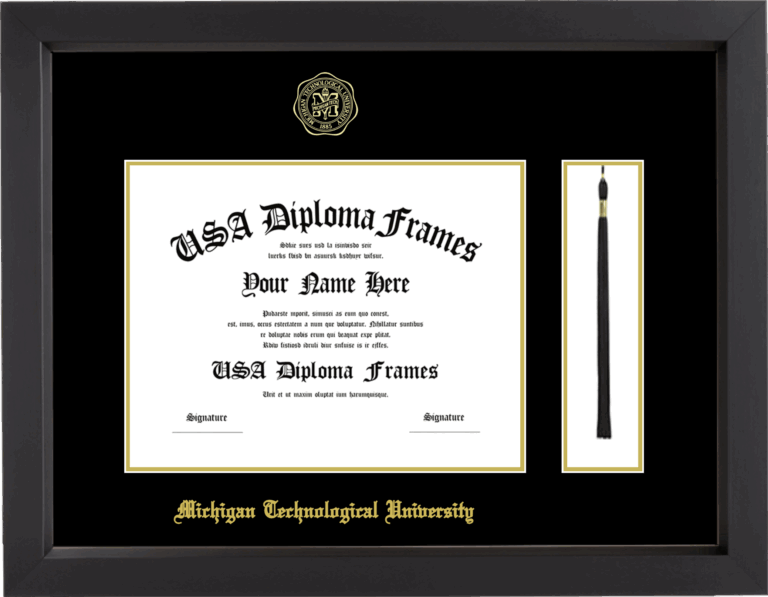 Michigan Technological University Diploma Frame with Tassel – Black Matte – Black and Gold Mat