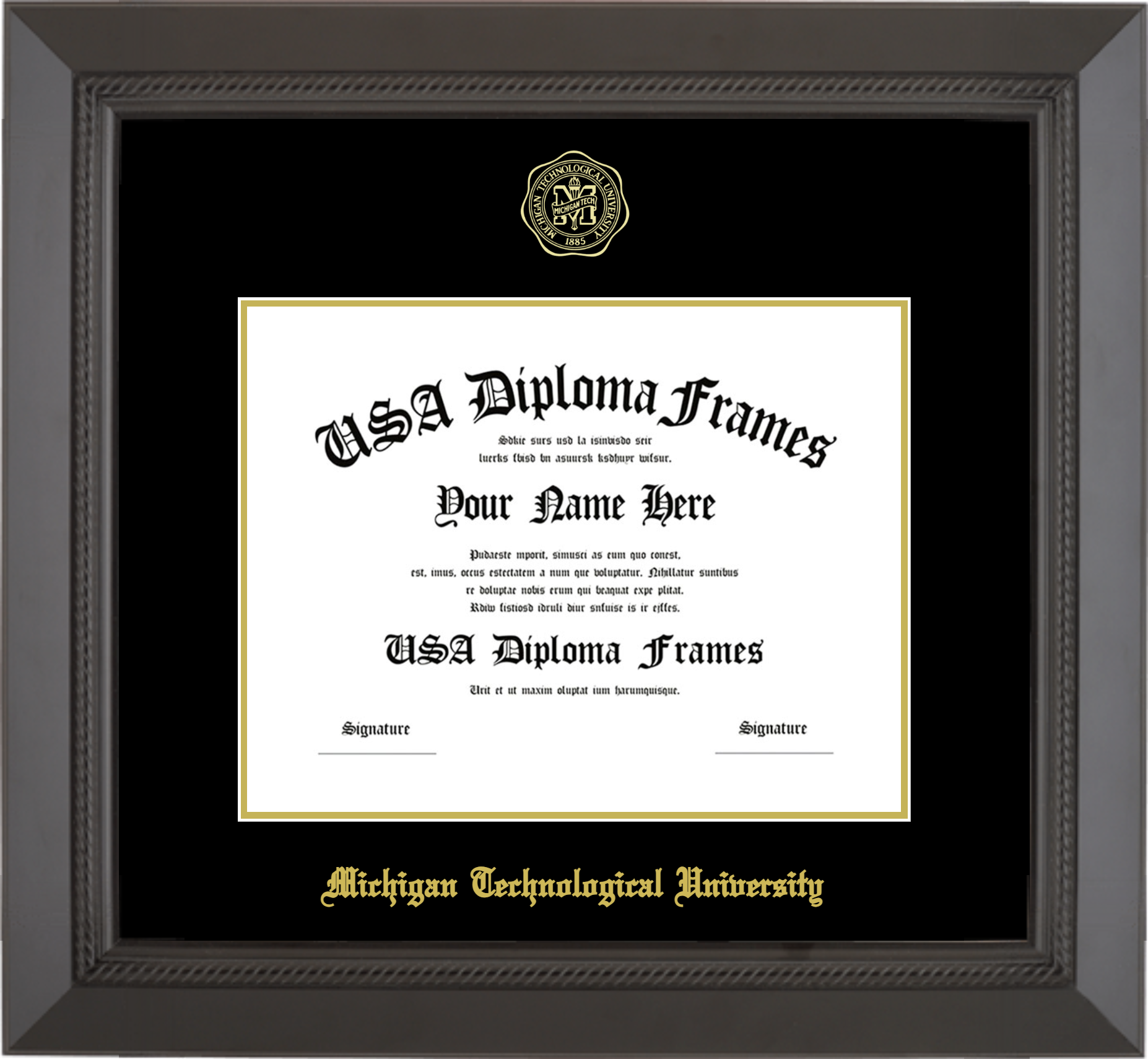 Michigan Technological University Diploma Frame – Black Rope – Black and Gold Mat