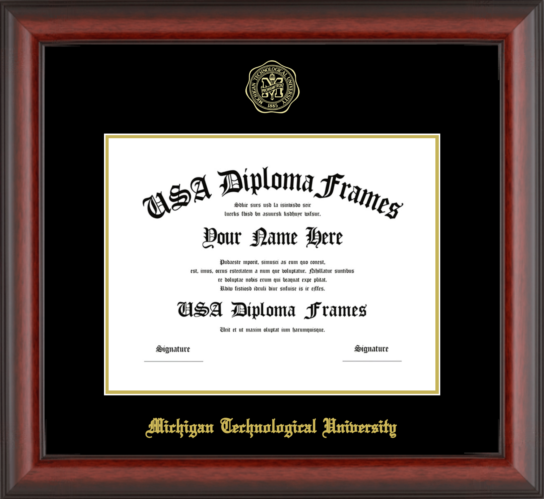 Michigan Technological University Diploma Frame – Cherry Mahogany Matte – Black and Gold Mat