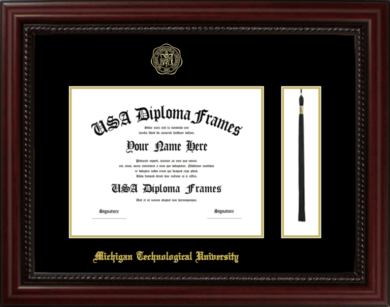 Michigan Technological University Diploma Frame with Tassel – Executive Cherry Rope – Black and Gold Mat