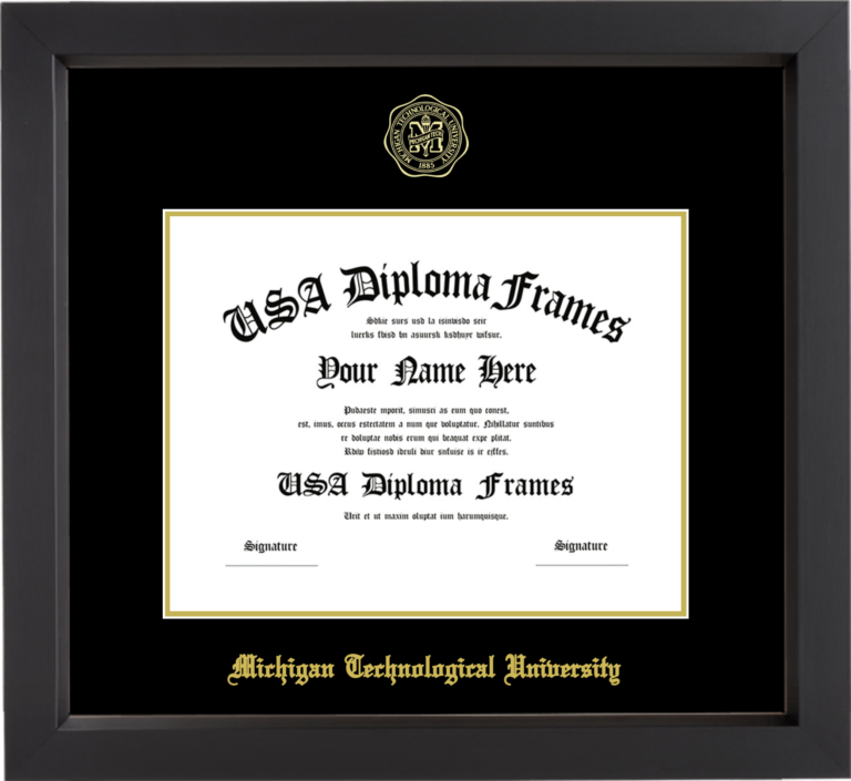 Michigan Technological University Diploma Frame – Black Matte – Black and Gold Mat
