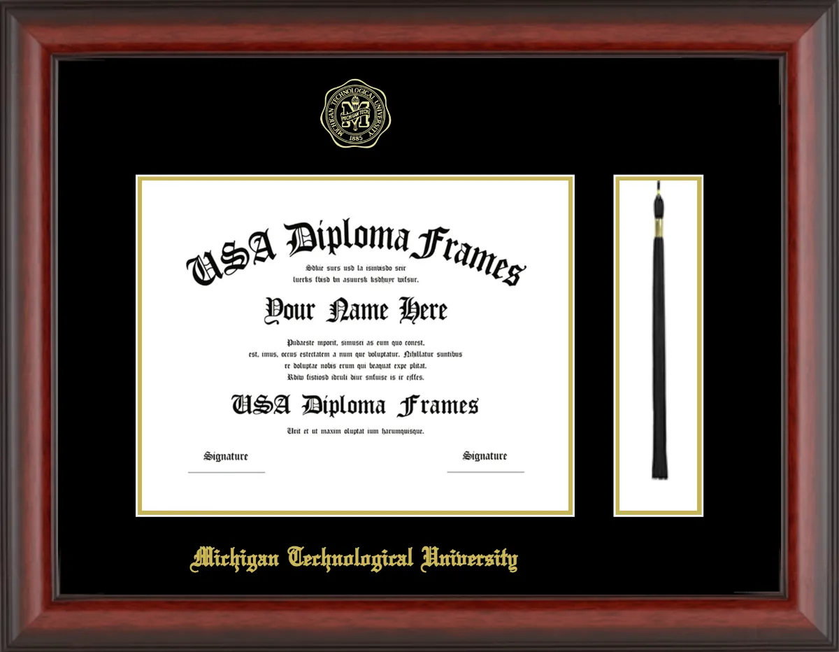 Michigan Technological University Diploma Frame with Tassel – Cherry Mahogany Matte – Black and Gold Mat