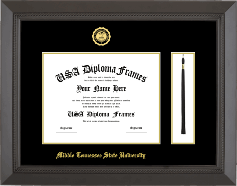 Middle Tennessee State University Diploma Frame with Tassel – Black Rope – Black and Gold Mat