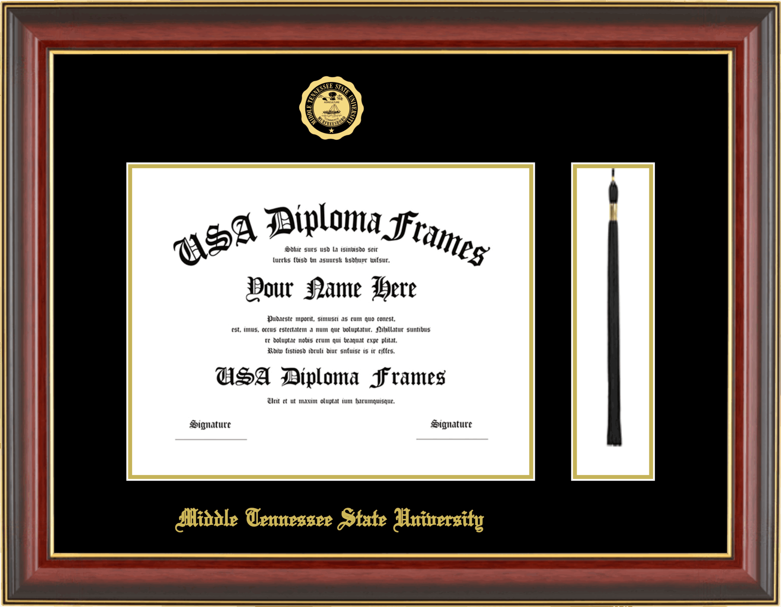 Middle Tennessee State University Diploma Frame with Tassel – Cherry Mahogany Gold Trim Glossy – Black and Gold Mat