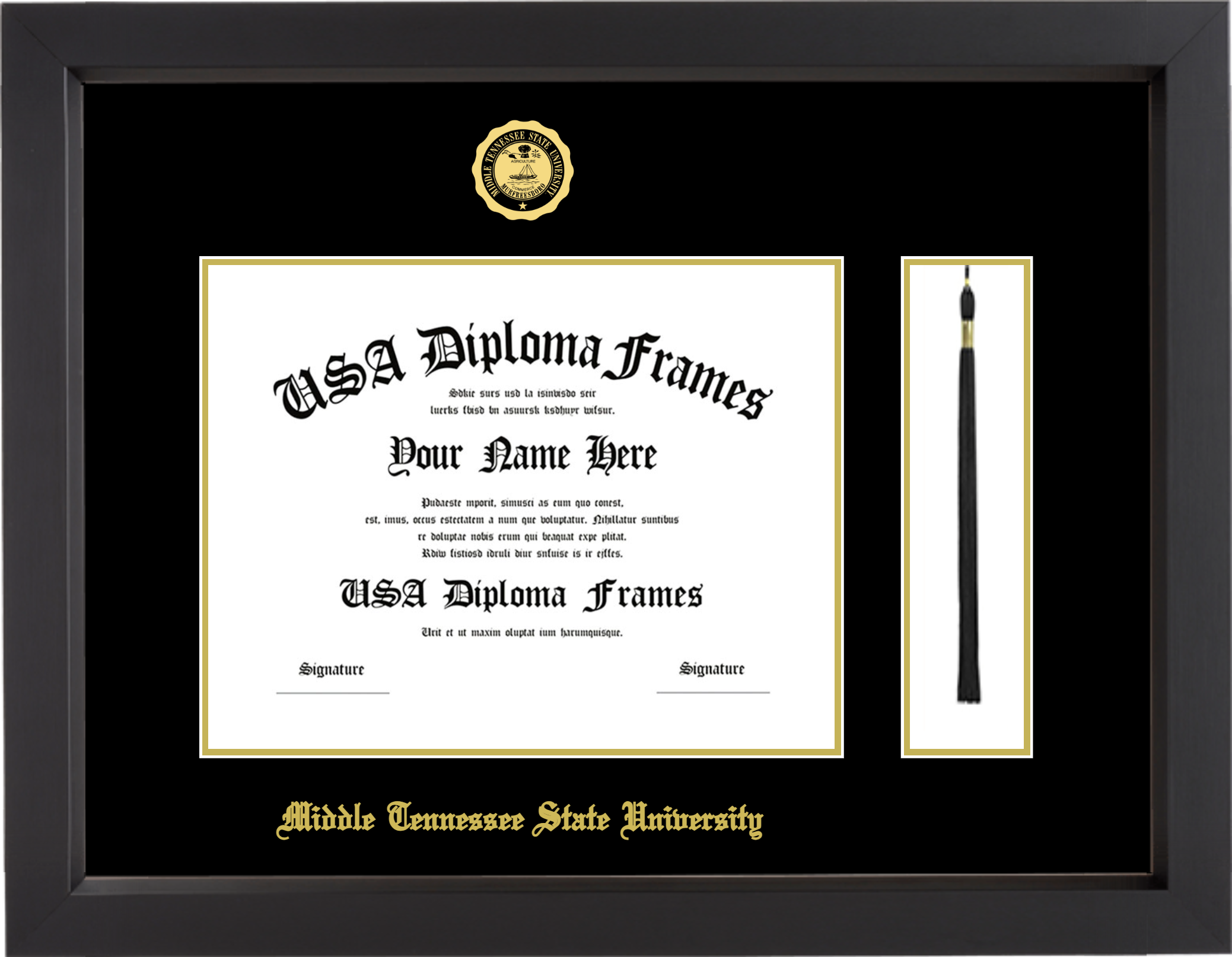 Middle Tennessee State University Diploma Frame with Tassel – Black Matte – Black and Gold Mat
