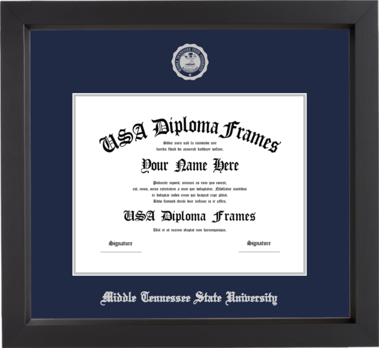 Want to explore more styles? Browse our full range of diploma frame layouts, or visit the Middle Tennessee State University to view options available for your school. Looking for a fully personalized design? Try our custom Frame Builder and create a frame that’s uniquely yours.