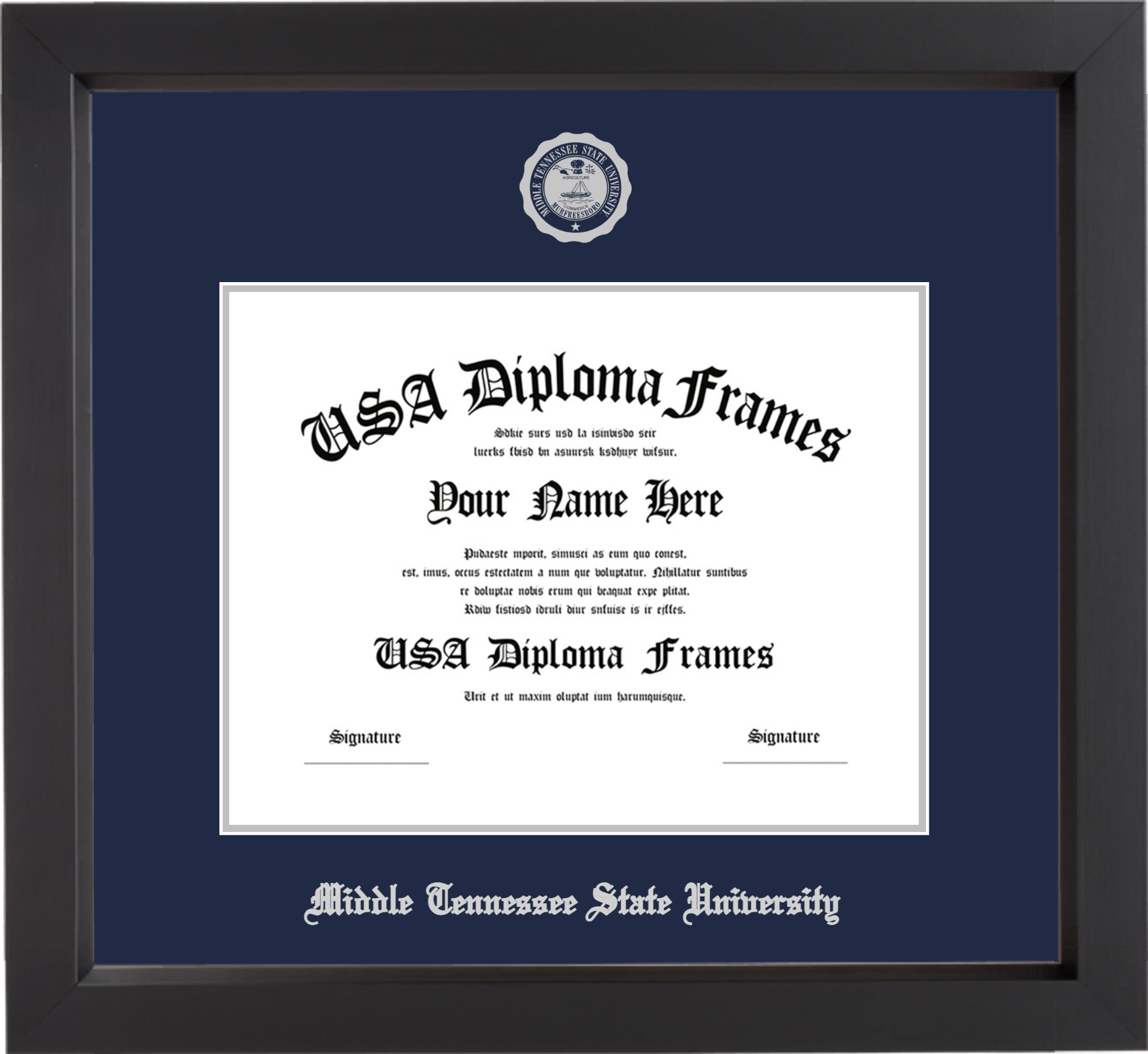 Middle Tennessee State University – Single Horizontal Document ( Bachelors ) – Black Matte – Navy Mat – Silver Accent Mat – With Seal(University Seal Silver) – With Silver Embossing (Middle Tennessee State University)