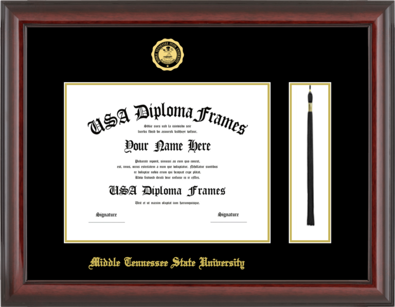 Middle Tennessee State University Diploma Frame with Tassel – Cherry Mahogany Glossy – Black and Gold Mat