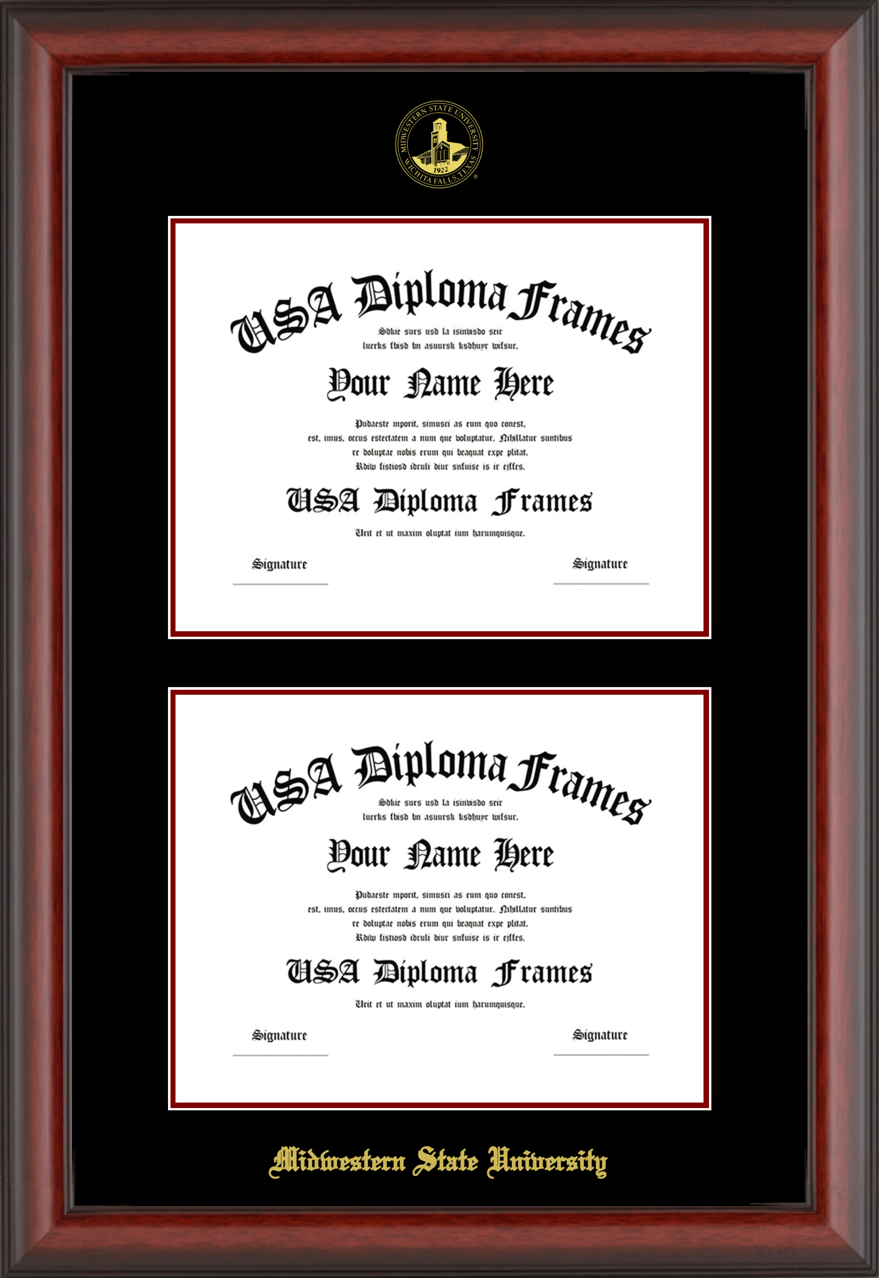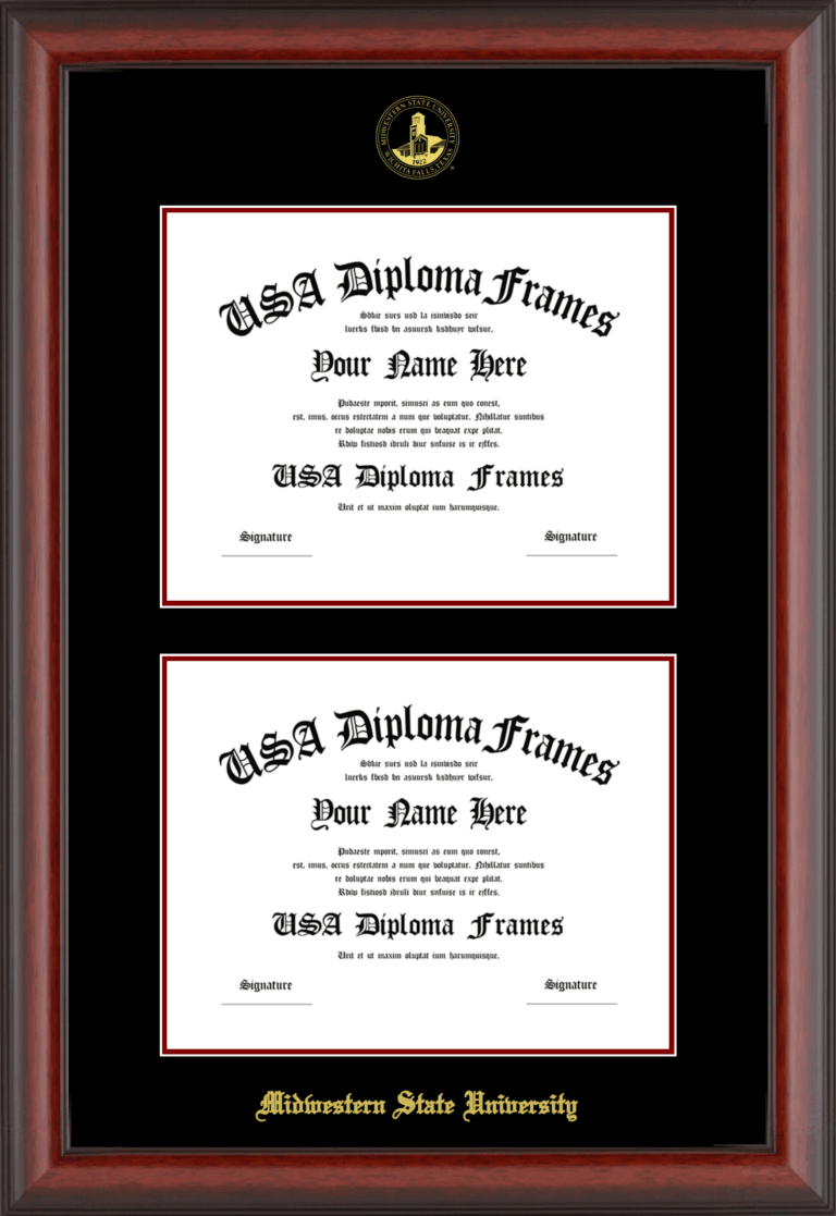 Midwestern State University Double Diploma Frame – Double Document – Cherry Mahogany Matte – Black and Maroon Mat