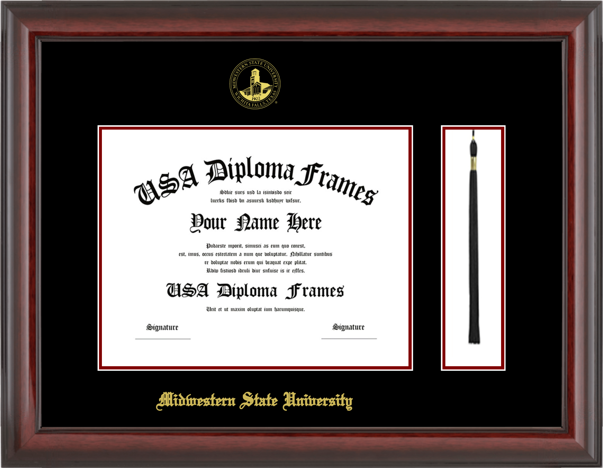 Midwestern State University Diploma Frame with Tassel – Cherry Mahogany Glossy – Black and Maroon Mat