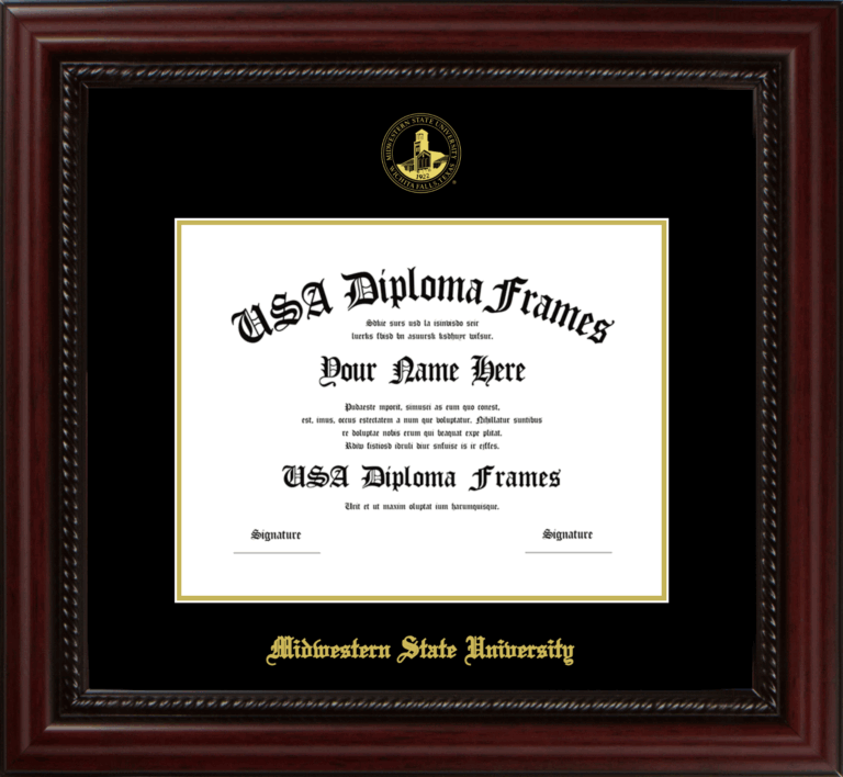 Midwestern State University Diploma Frame – Executive Cherry Rope – Black and Gold Mat