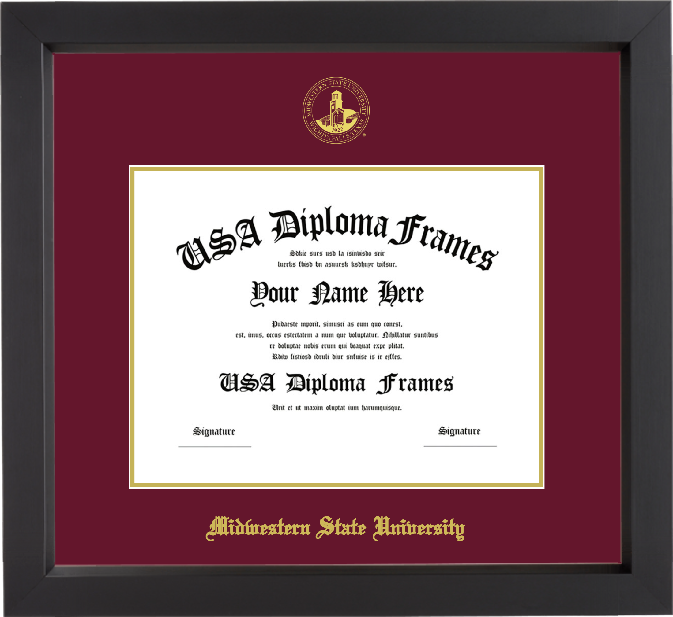 Midwestern State University – Single Horizontal Document ( Diploma ) – Black Matte – Maroon Mat – Gold Accent Mat – With Seal(University Seal Gold) – With Gold Embossing (Midwestern State University)