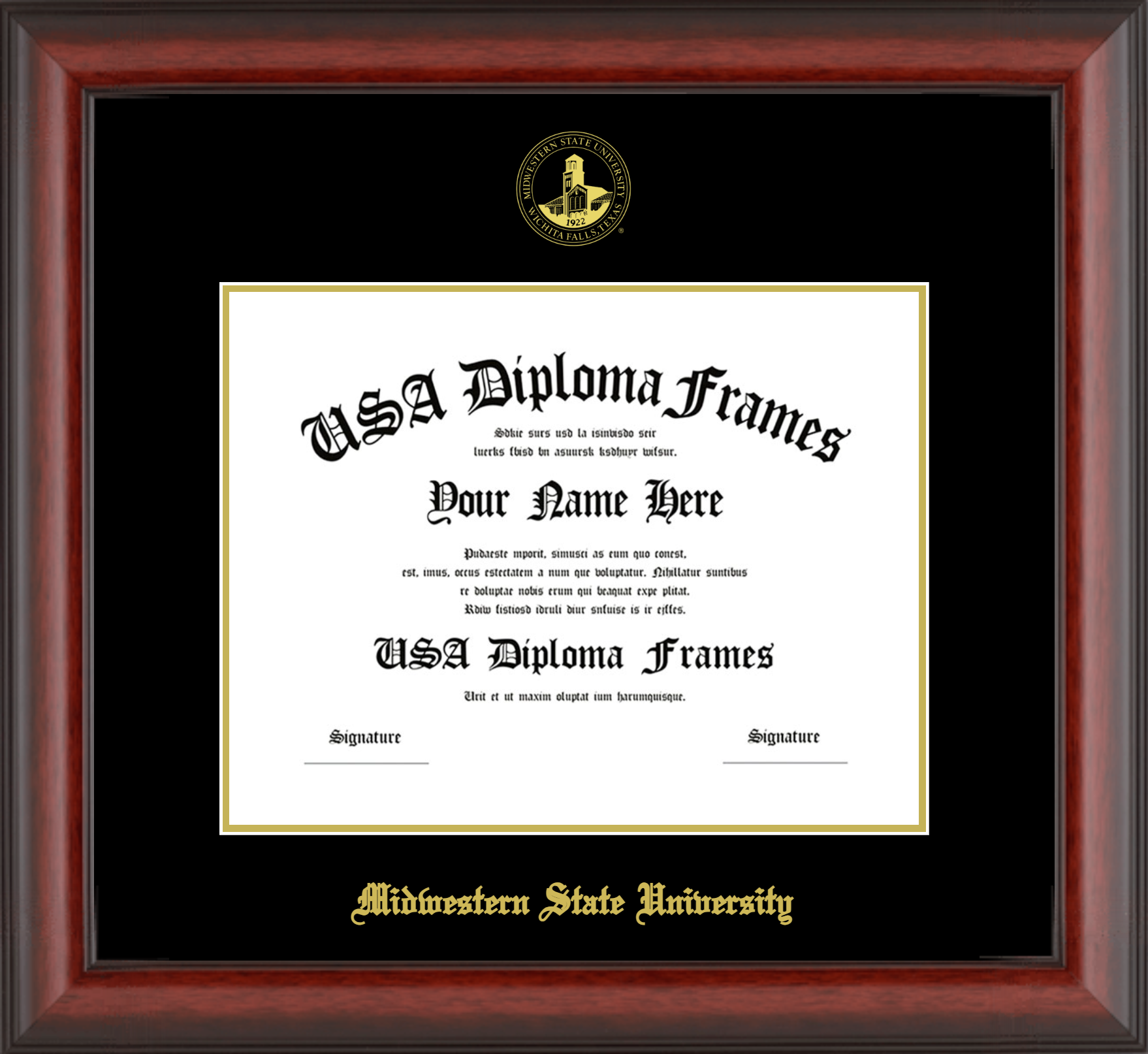 Midwestern State University Diploma Frame – Cherry Mahogany Matte – Black and Gold Mat