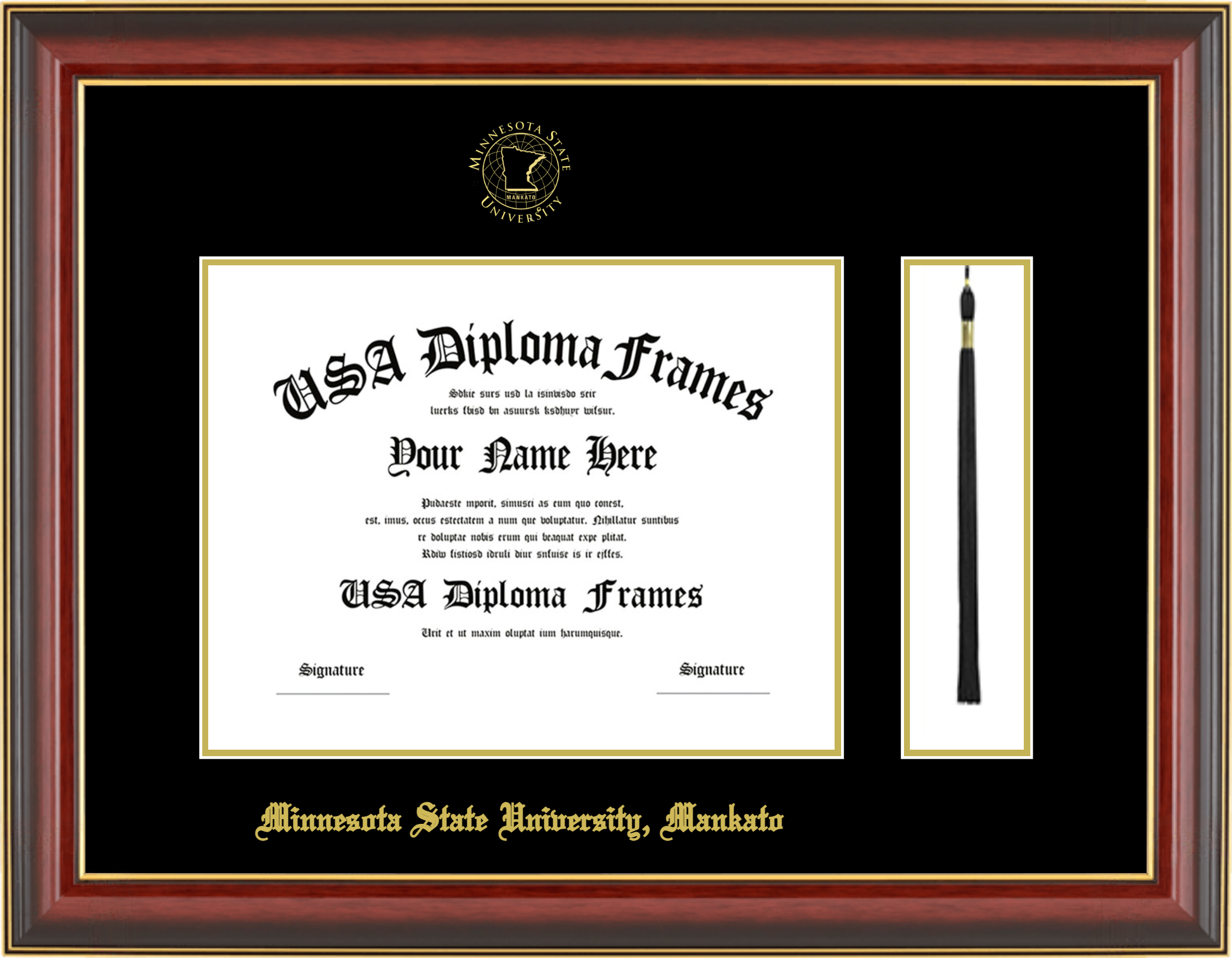 Minnesota State University Mankato Diploma Frame with Tassel – Cherry Mahogany Gold Trim Glossy – Black and Gold Mat