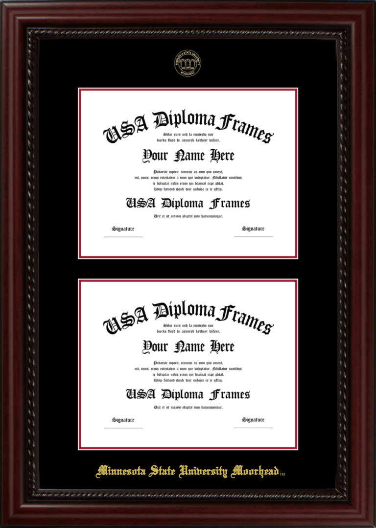 Minnesota State University Moorhead Double Diploma Frame – Double Document – Executive Cherry Rope – Black and Crimson Mat