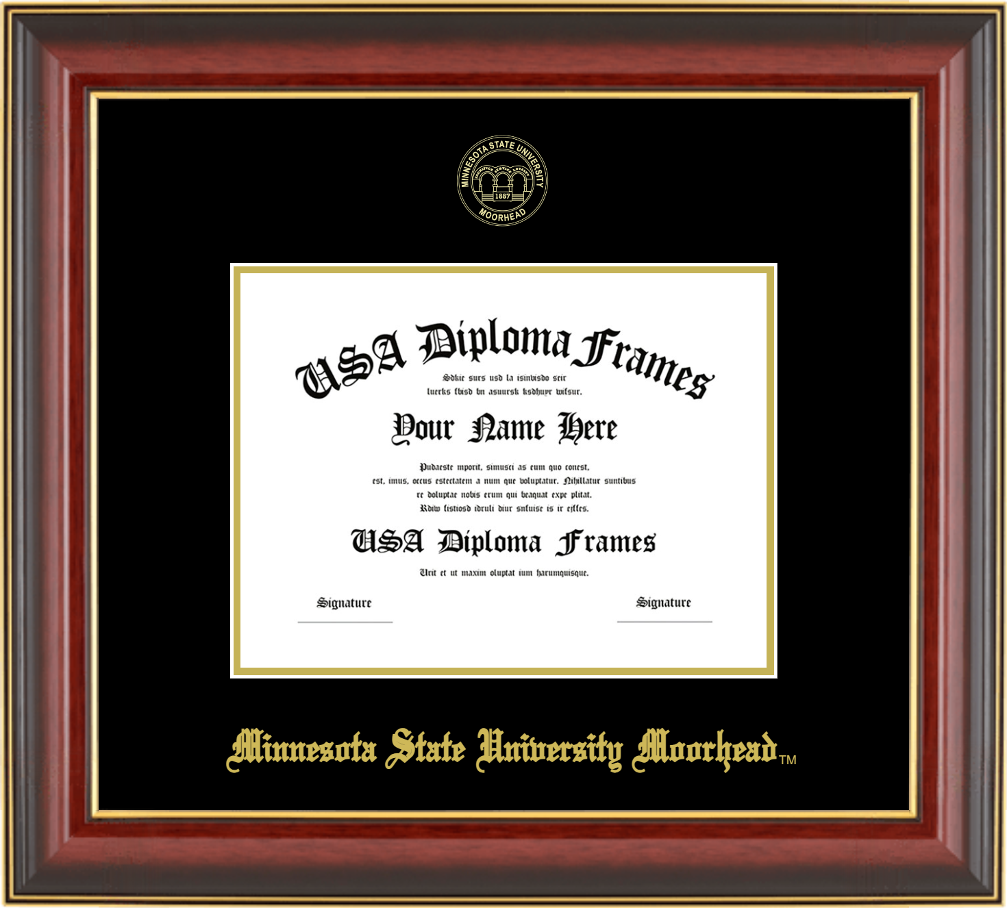 Minnesota State University Moorhead Diploma Frame 6 x 8 – Cherry Mahogany Gold Trim Glossy – Black and Gold Mat