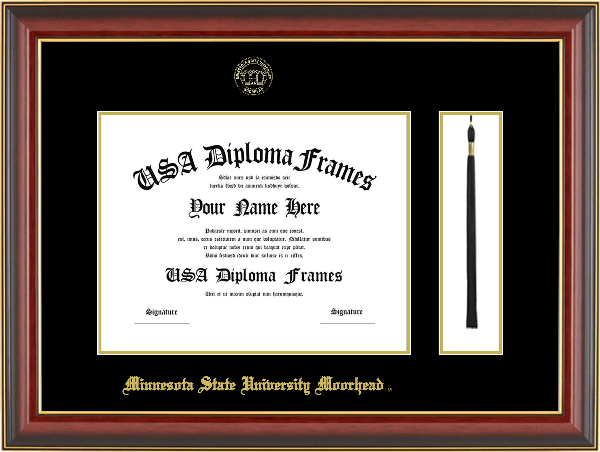 Minnesota State University Moorhead – Single Horizontal Document ( 8 1/2″x11″ ) – Cherry Mahogany Gold Trim Glossy – Black Mat – Gold Accent Mat – With Tassel(Default) – With Seal(University Seal Gold) – With Gold Embossing (Minnesota State University Moorhead)
