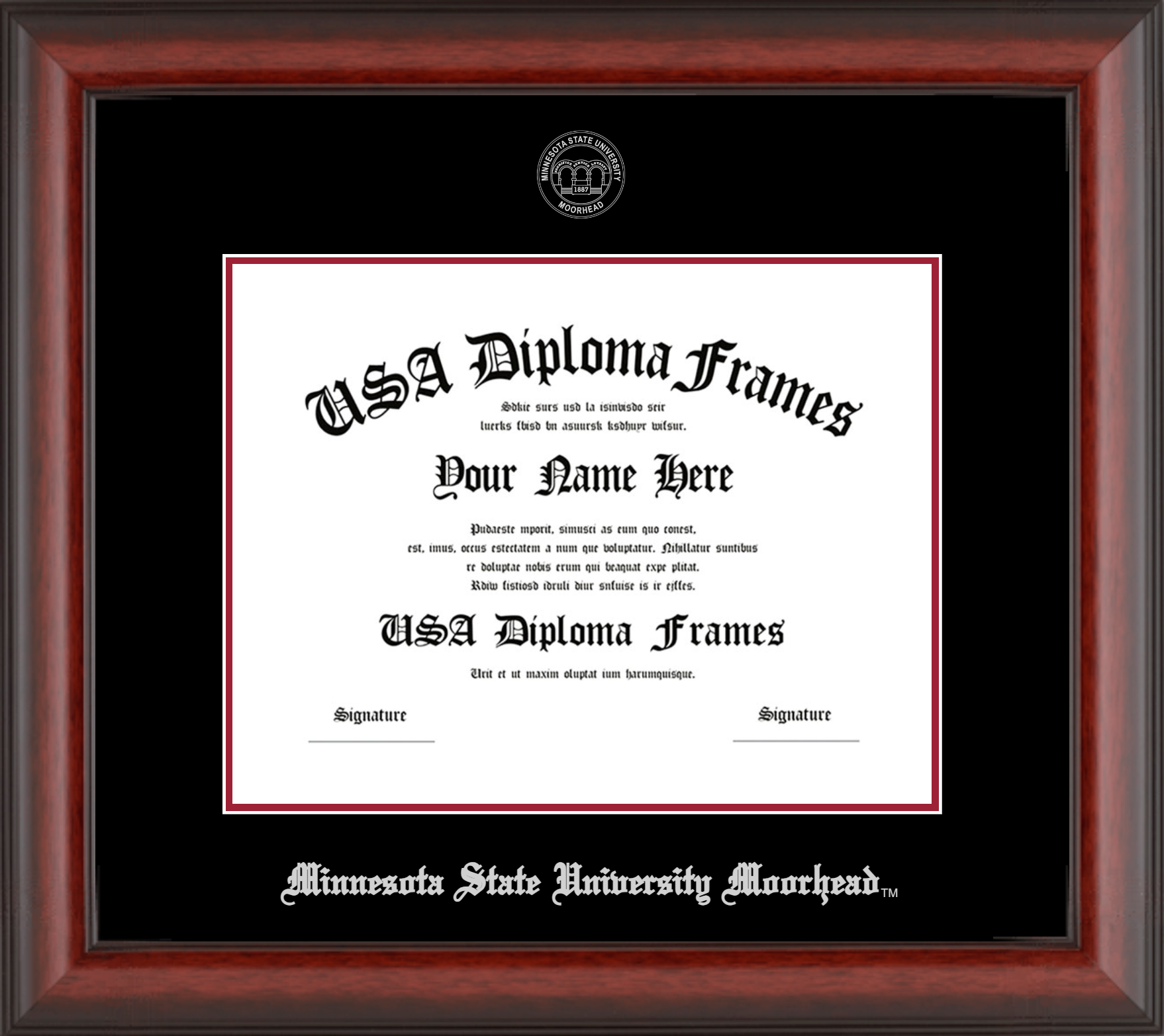 Minnesota State University Moorhead – Single Horizontal Document ( 8 1/2″x11″ ) – Cherry Mahogany Matte – Black Mat – Crimson Accent Mat – With Seal(University Seal Silver) – With Silver Embossing (Minnesota State University Moorhead)