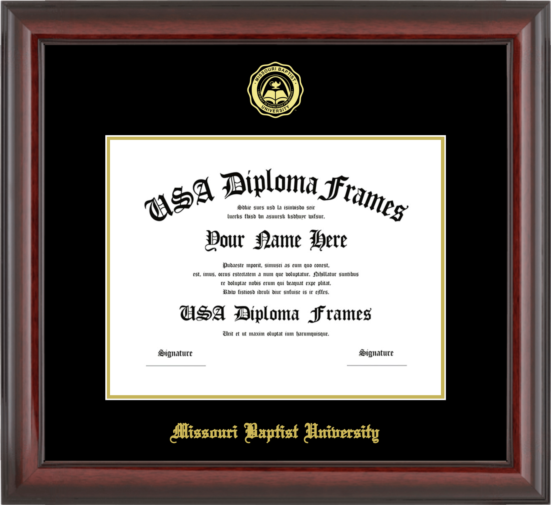 Missouri Baptist University Diploma Frame – Cherry Mahogany Glossy – Black and Gold Mat