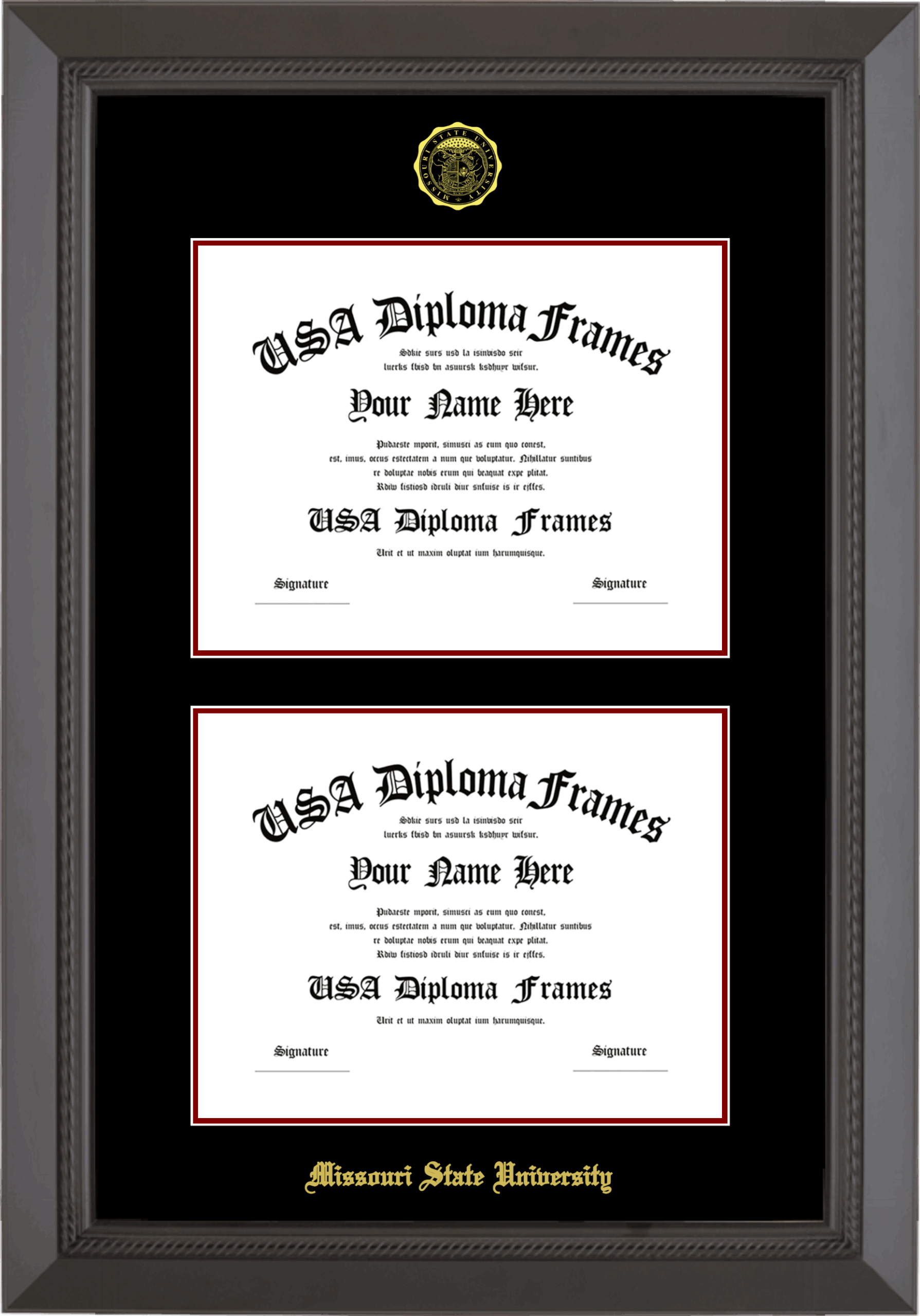 Missouri State University Double Diploma Frame – Double Document – Black Rope – Black and Maroon Mat