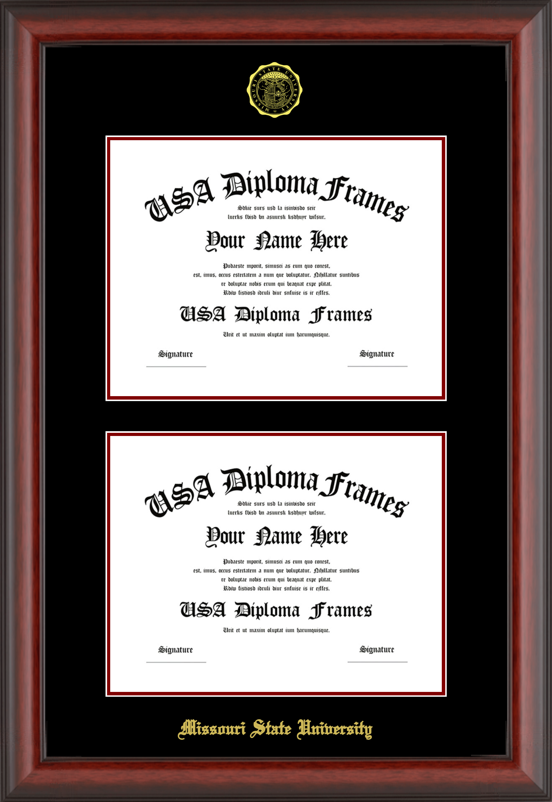Missouri State University Double Diploma Frame – Double Document – Cherry Mahogany Matte – Black and Maroon Mat