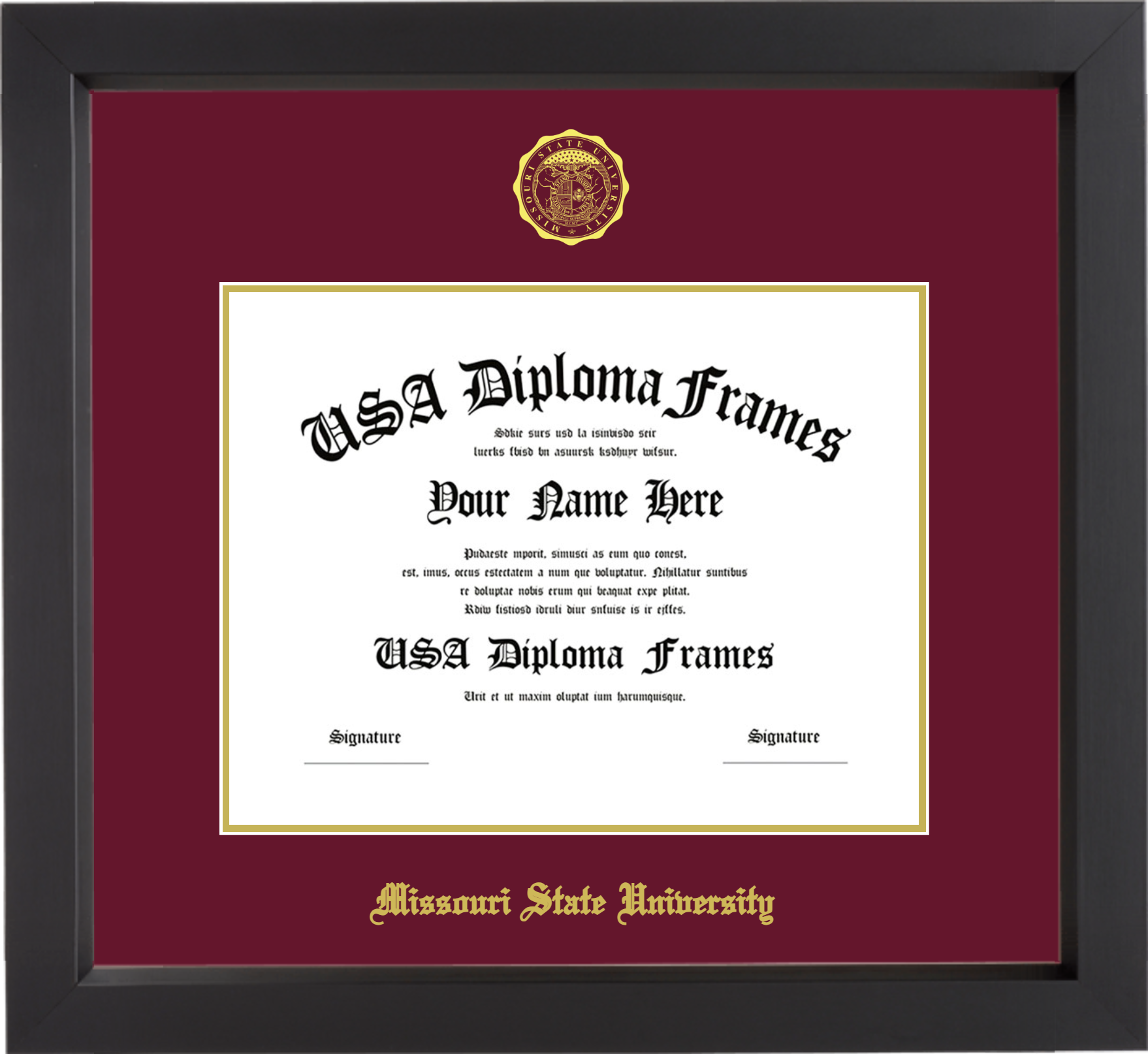 Missouri State University Diploma Frame – Black Matte – Maroon and Gold Mat