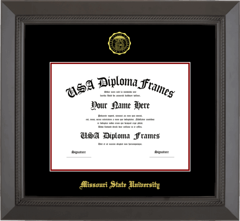 Want to explore more styles? Browse our full range of diploma frame layouts, or visit the Missouri State University to view options available for your school. Looking for a fully personalized design? Try our custom Frame Builder and create a frame that’s uniquely yours.