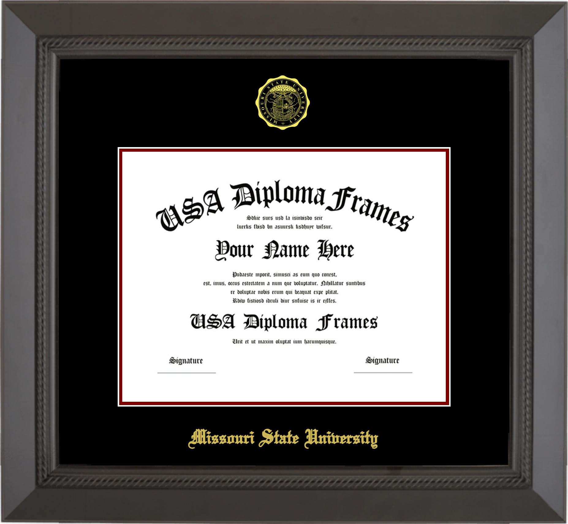 Missouri State University Diploma Frame – Black Rope – Black and Maroon Mat