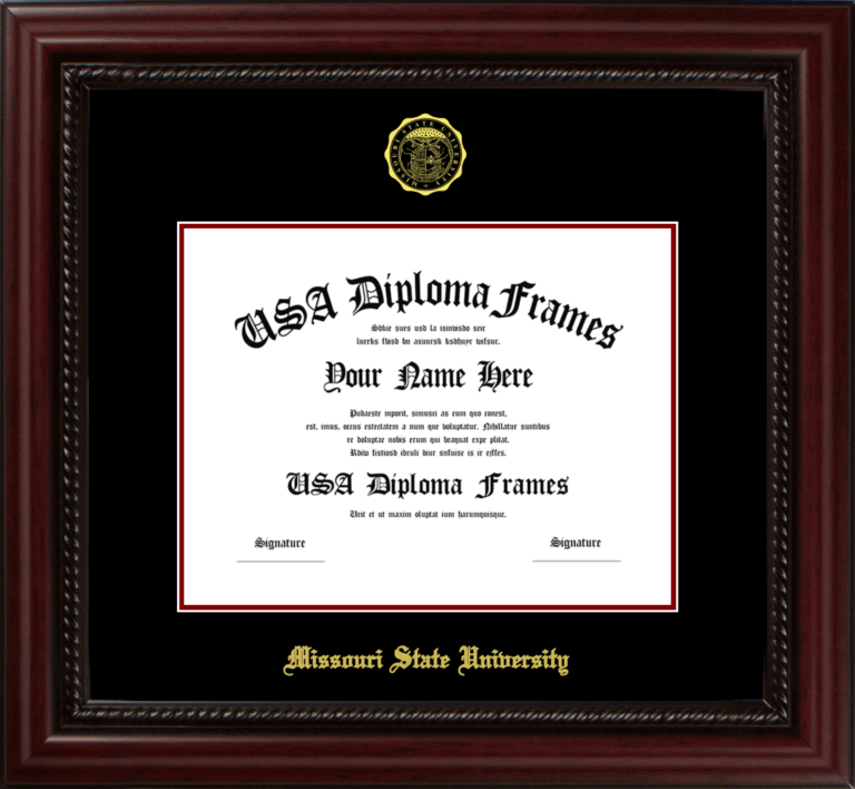 Want to explore more styles? Browse our full range of diploma frame layouts, or visit the Missouri State University to view options available for your school. Looking for a fully personalized design? Try our custom Frame Builder and create a frame that’s uniquely yours.