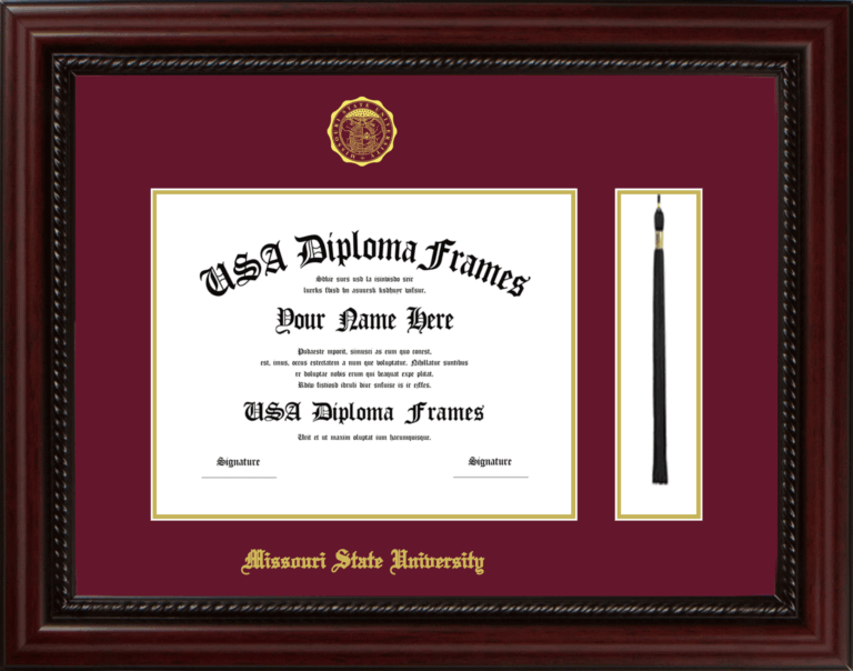 Missouri State University Diploma Frame with Tassel – Executive Cherry Rope – Maroon and Gold Mat