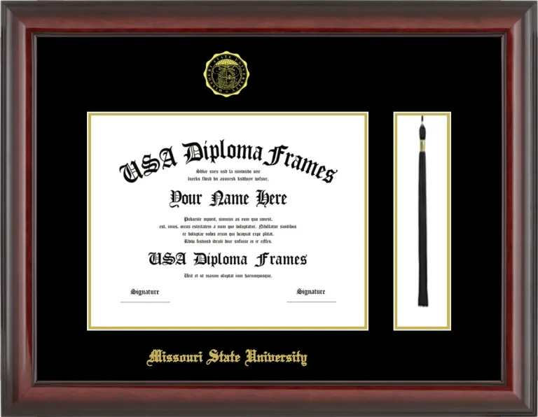 Want to explore more styles? Browse our full range of diploma frame layouts, or visit the Missouri State University to view options available for your school. Looking for a fully personalized design? Try our custom Frame Builder and create a frame that’s uniquely yours.