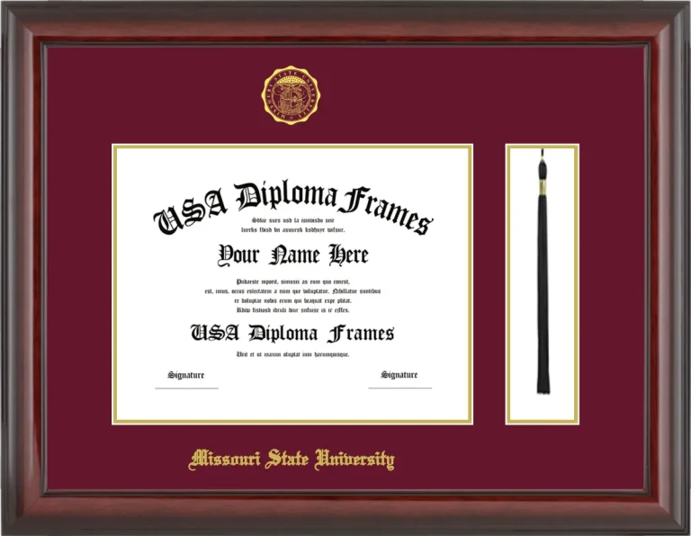 Want to explore more styles? Browse our full range of diploma frame layouts, or visit the Missouri State University to view options available for your school. Looking for a fully personalized design? Try our custom Frame Builder and create a frame that’s uniquely yours.