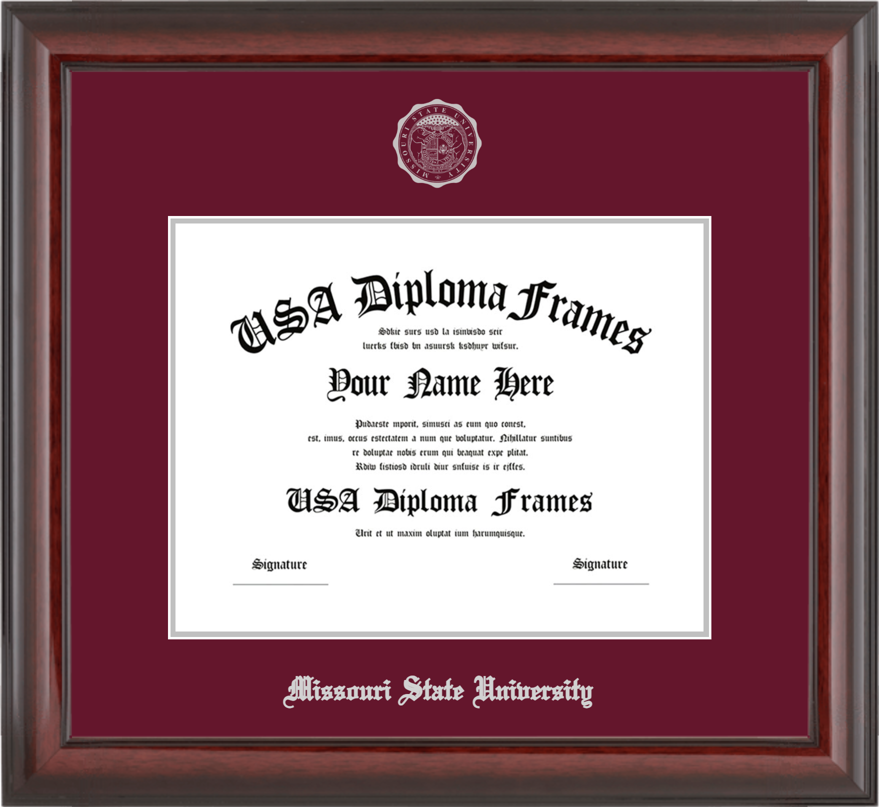 Missouri State University – Single Horizontal Document ( Diploma ) – Cherry Mahogany Glossy – Maroon Mat – Silver Accent Mat – With Seal(University Seal Silver) – With Silver Embossing (Missouri State University)