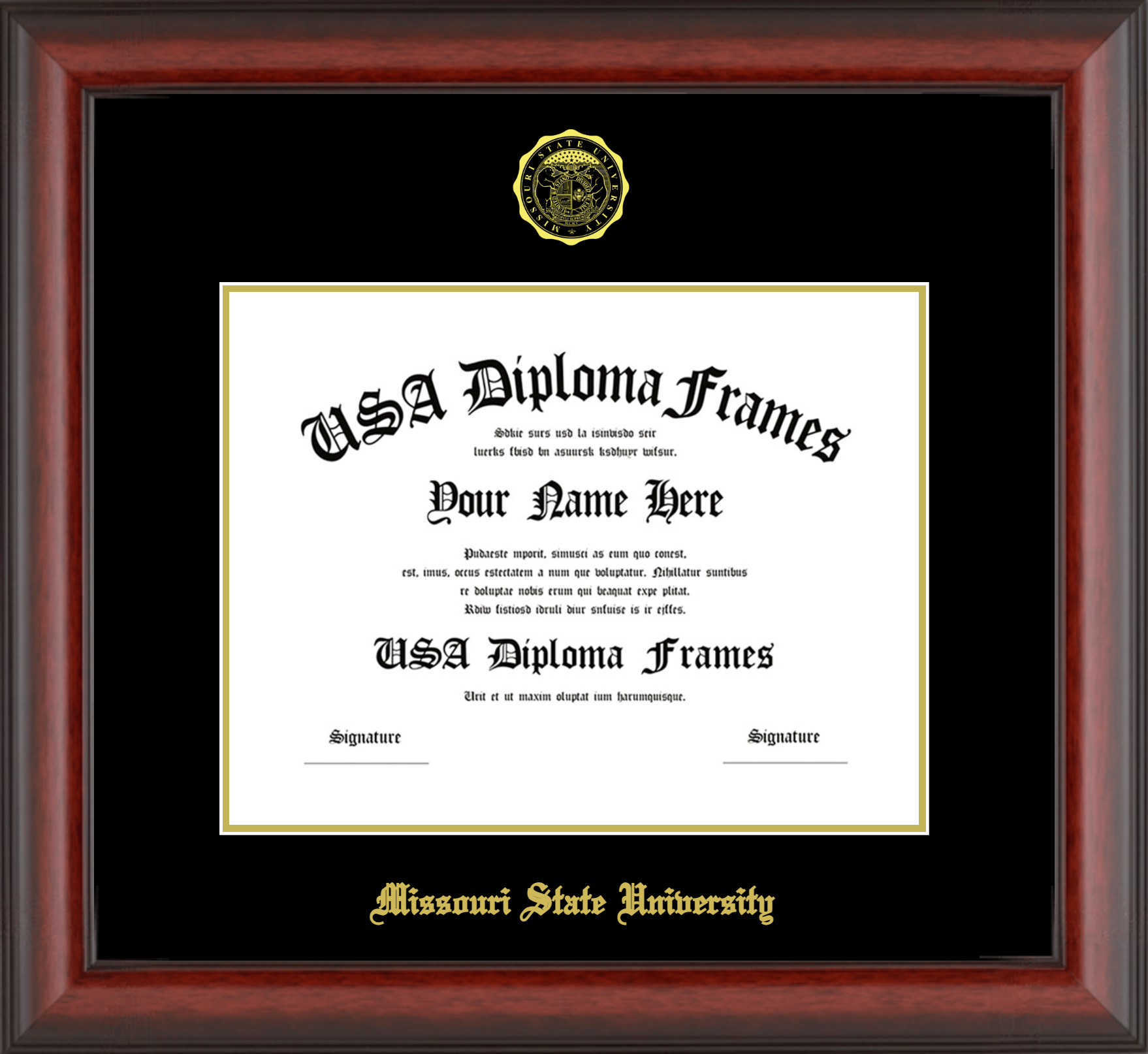Missouri State University Diploma Frame – Cherry Mahogany Matte – Black and Gold Mat