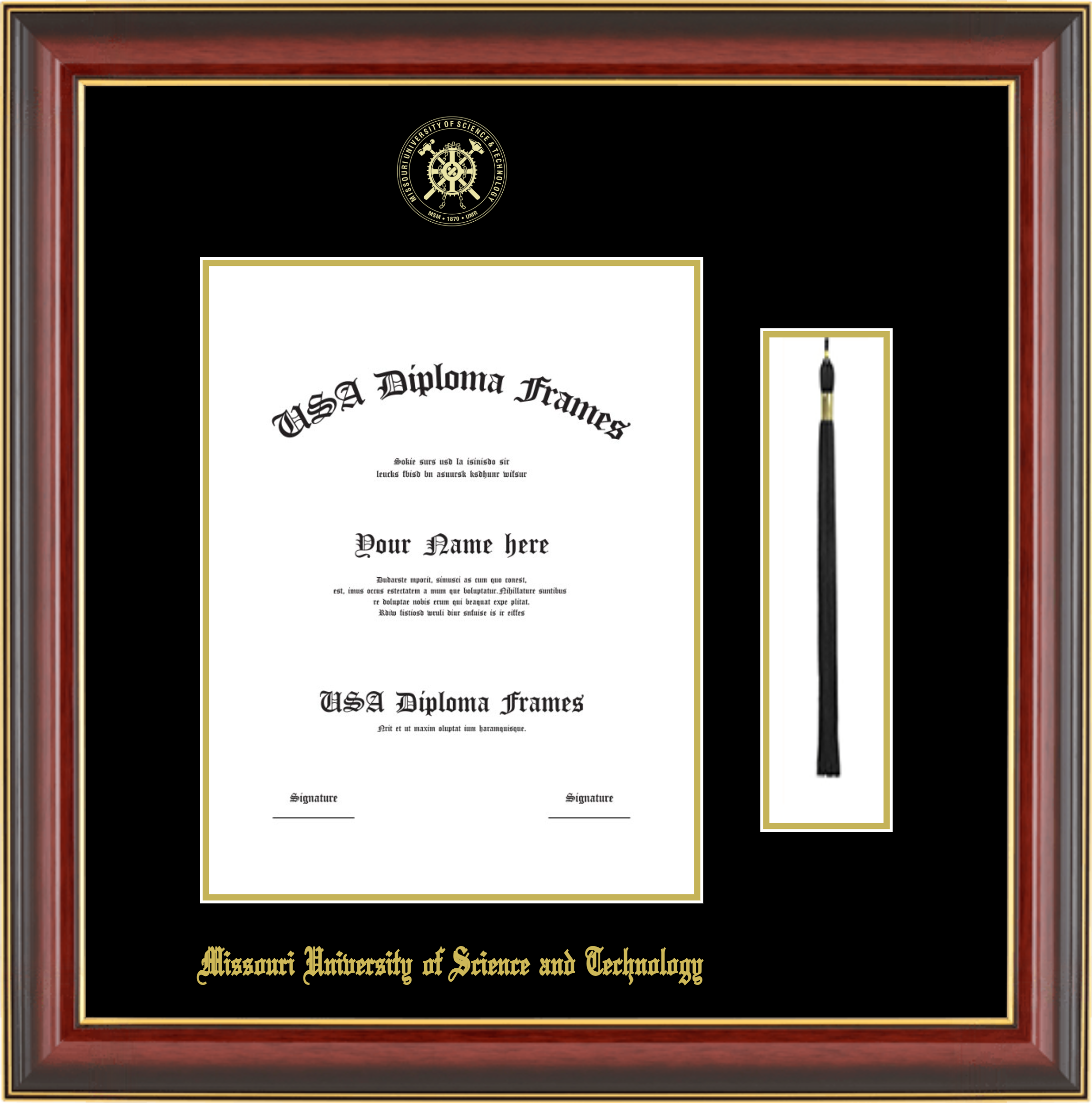 Missouri University of Science and Technology Diploma Frame with Tassel – Cherry Mahogany Gold Trim Glossy – Black and Gold Mat