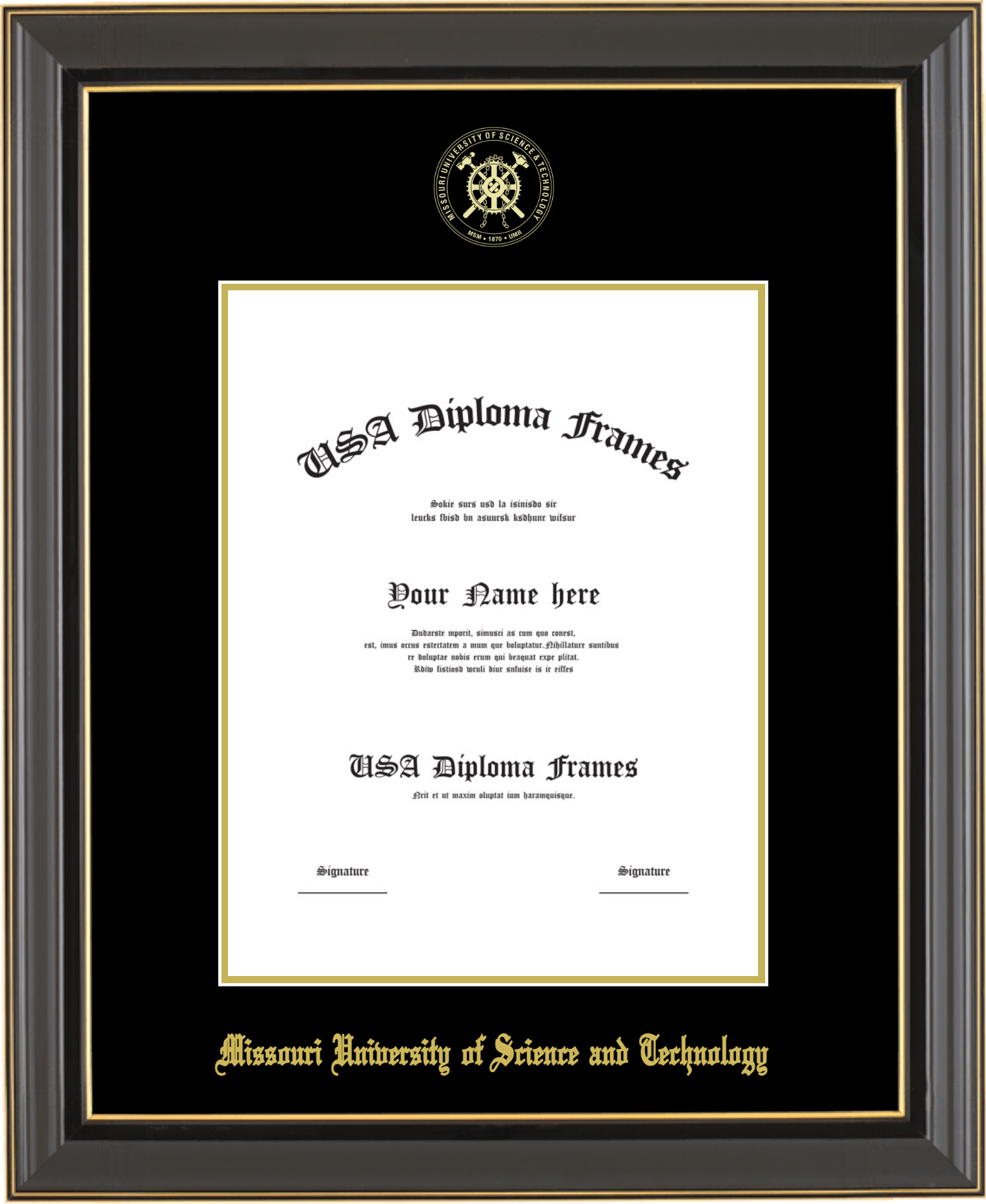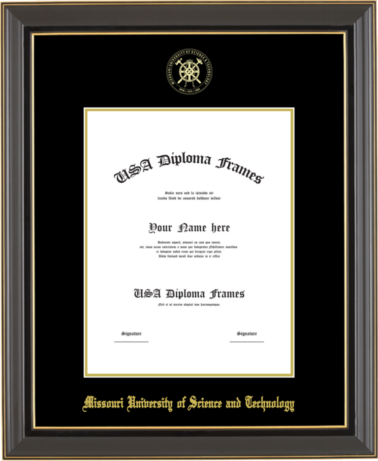 Missouri University of Science and Technology – Single Vertical Document ( Bachelors/Masters ) – Black Gold Trim Glossy – Black Mat – Gold Accent Mat