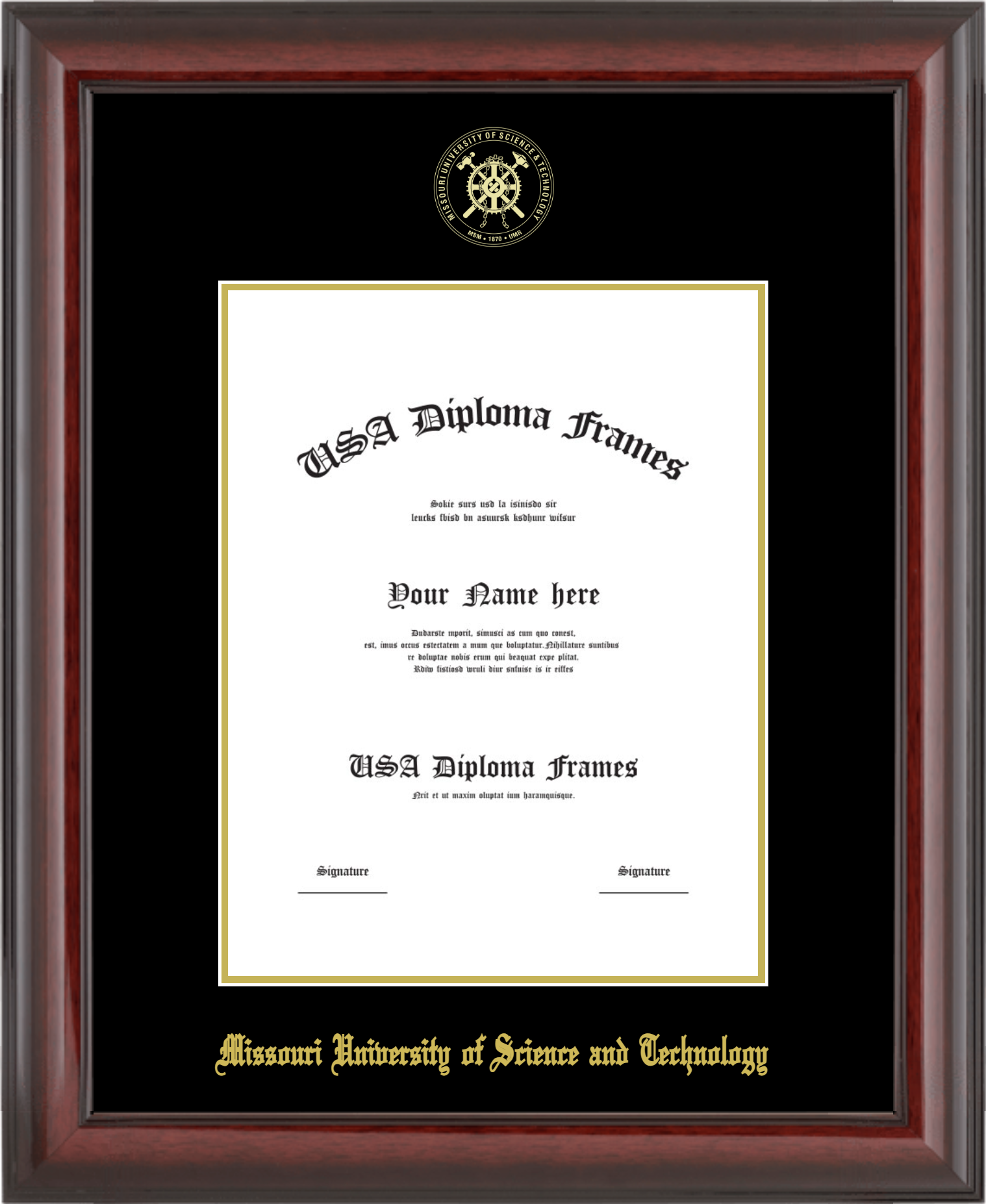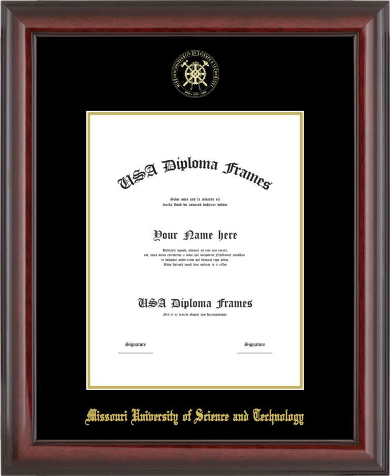 Missouri University of Science and Technology Diploma Frame – Cherry Mahogany Glossy – Black and Gold Mat