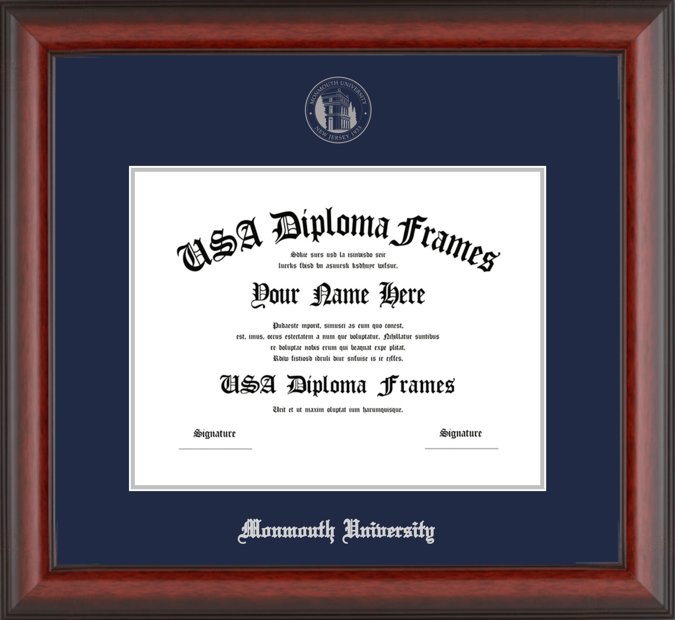 Monmouth University – Single Horizontal Document ( Bachelors ) – Cherry Mahogany Matte – Navy Mat – Silver Accent Mat – With Seal(University Seal Silver) – With Silver Embossing (Monmouth University)