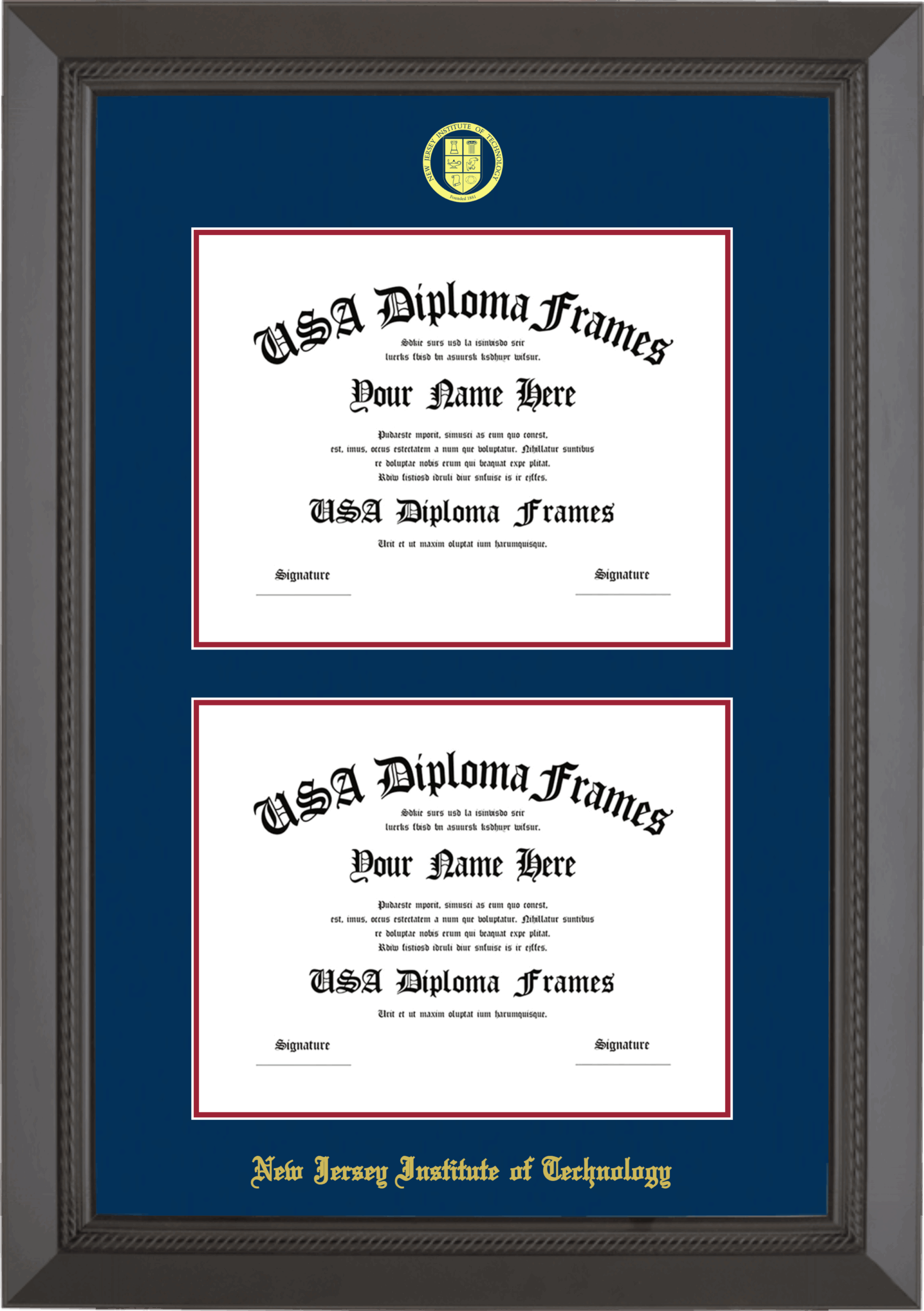New Jersey Institute of Technology NJIT Double Diploma Frame – Double Document – Black Rope – Navy and Crimson Mat