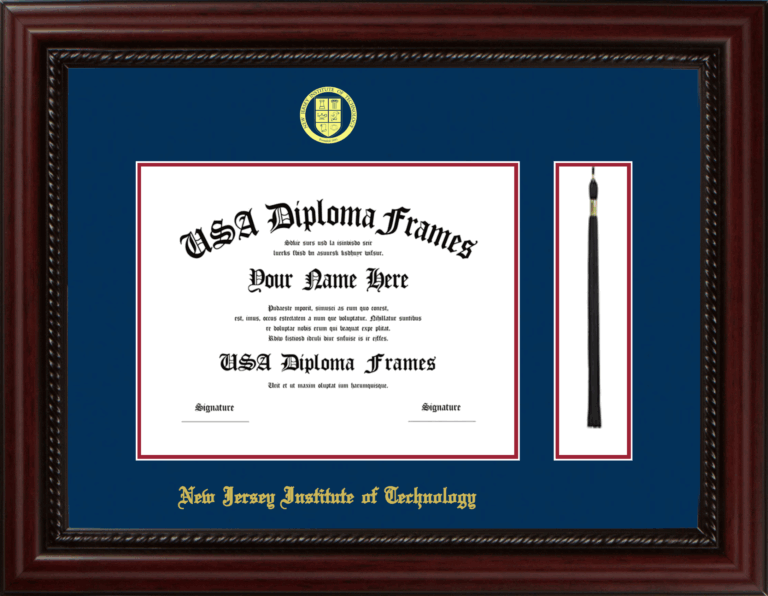 New Jersey Institute of Technology Diploma Frame with Tassel – Executive Cherry Rope – Navy and Crimson Mat