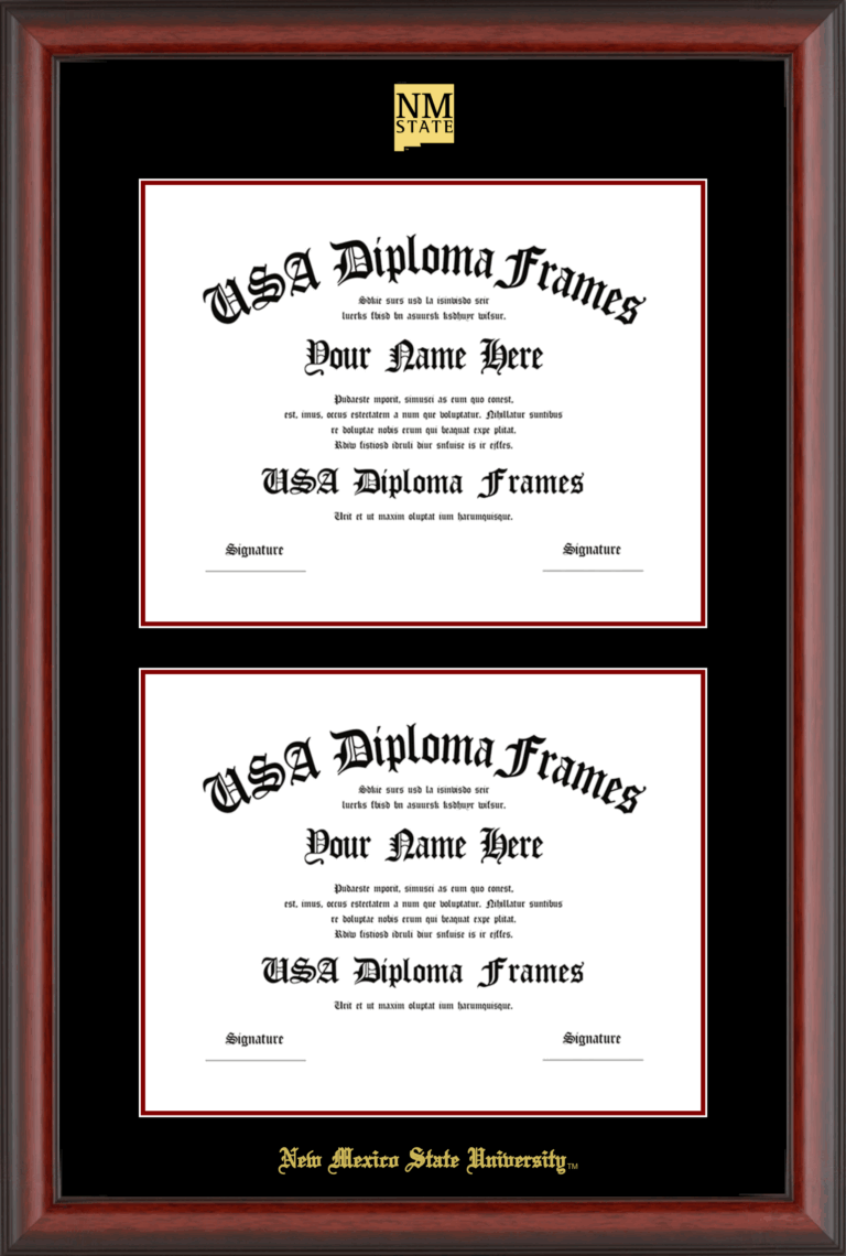 New Mexico State University Double Diploma Frame – Double Document – Cherry Mahogany Matte – Black and Maroon Mat