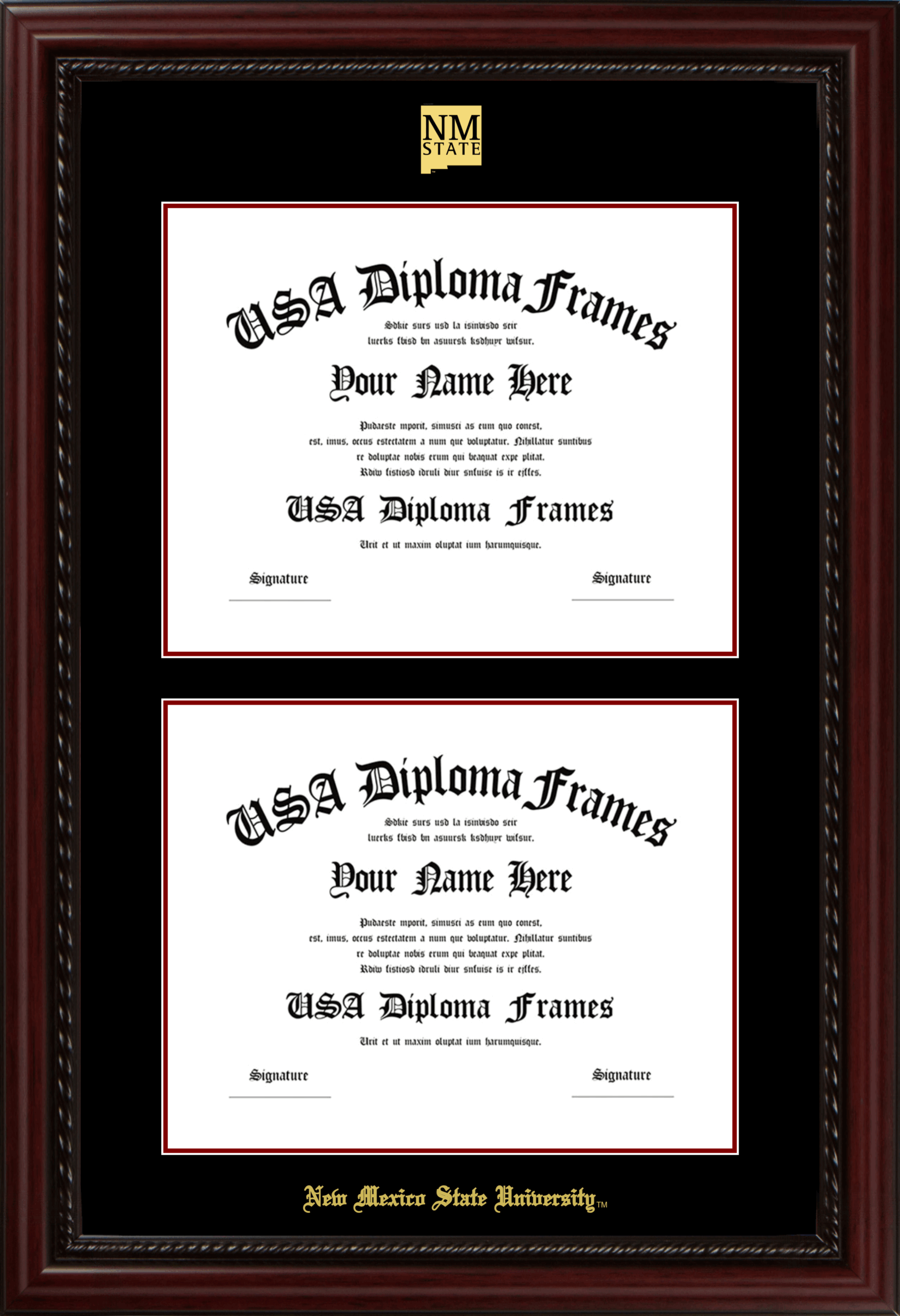 New Mexico State University Double Diploma Frame – Double Document – Executive Cherry Rope – Black and Maroon Mat