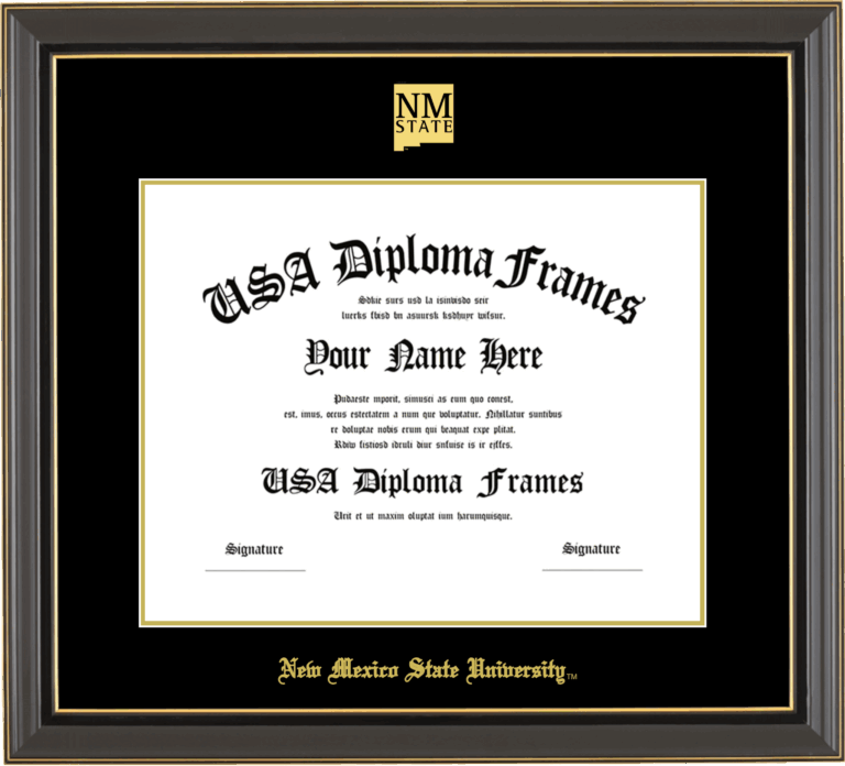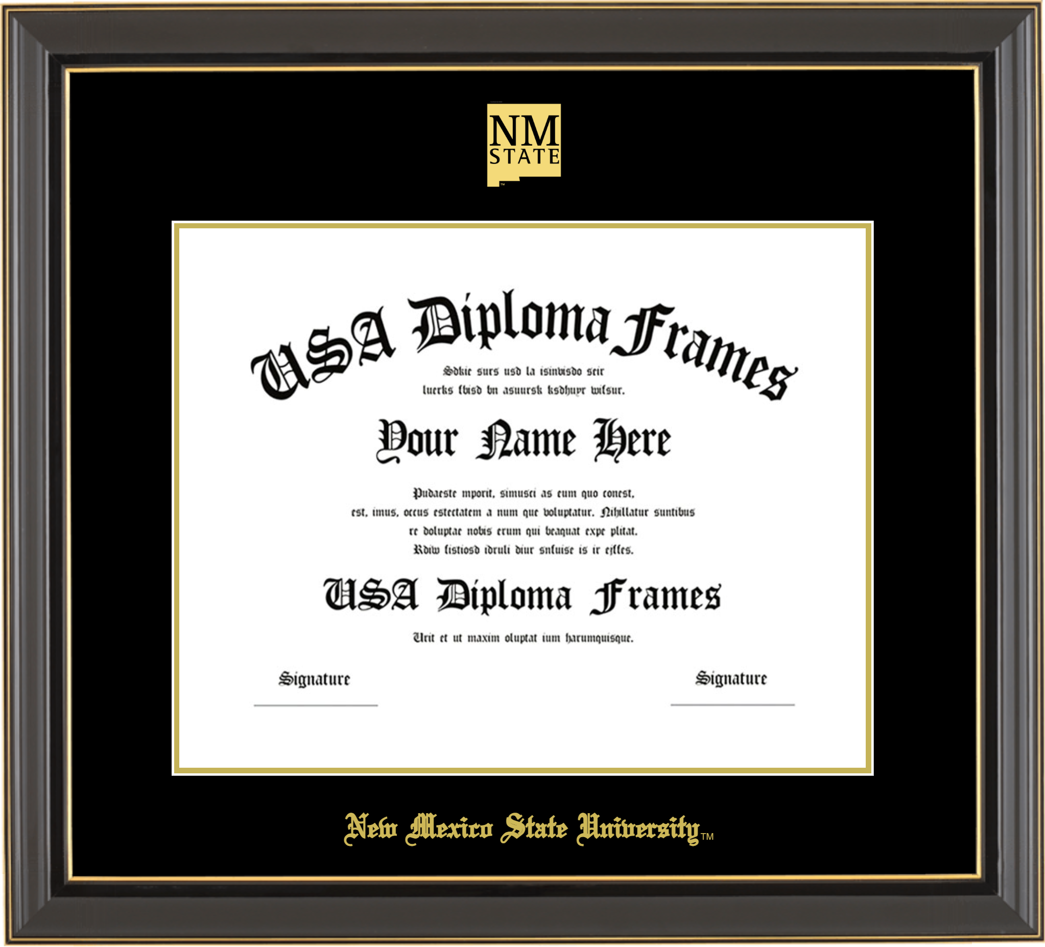 New Mexico State University Diploma Frame – Black Gold Trim Glossy – Black and Gold Mat