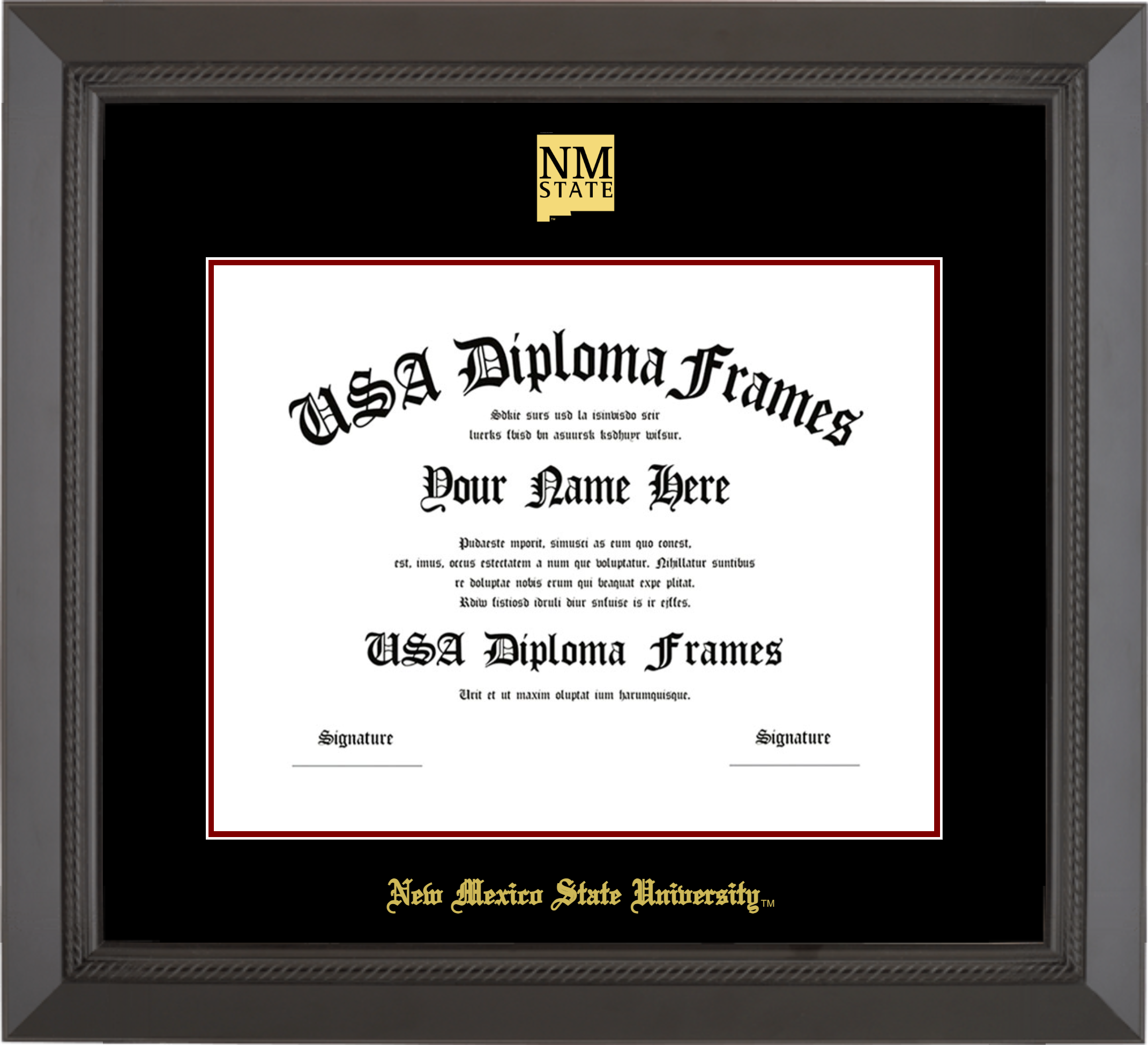 New Mexico State University Diploma Frame – Black Rope – Black and Maroon Mat