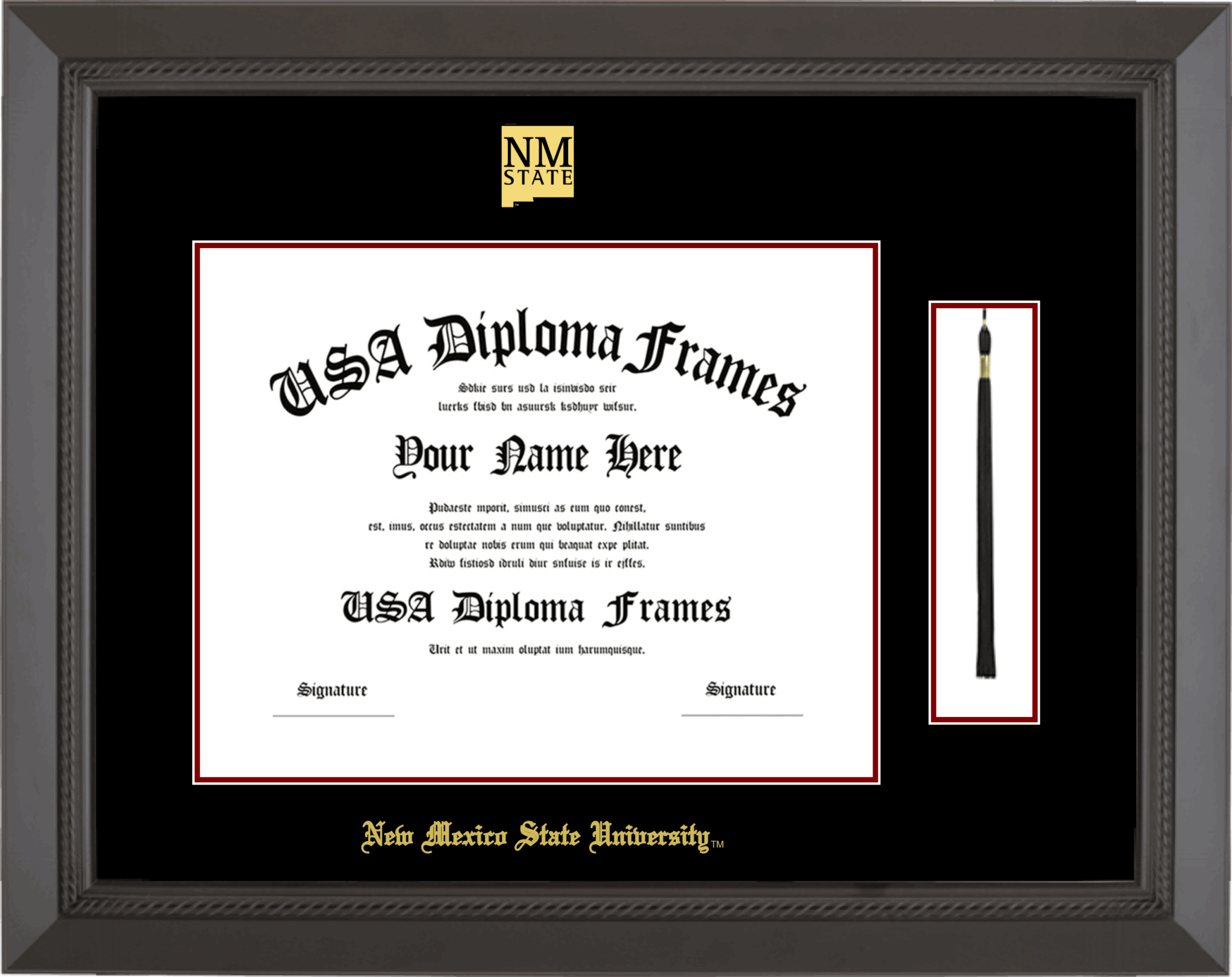 New Mexico State University – Single Horizontal Document ( Diploma ) – Black Rope – Black Mat – Maroon Accent Mat – With Tassel(Default) – With Seal(University Seal Gold) – With Gold Embossing (New Mexico State University)