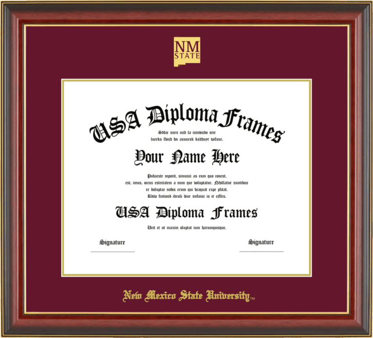 New Mexico State University Diploma Frame – Cherry Mahogany Gold Trim Glossy – Maroon and Gold Mat
