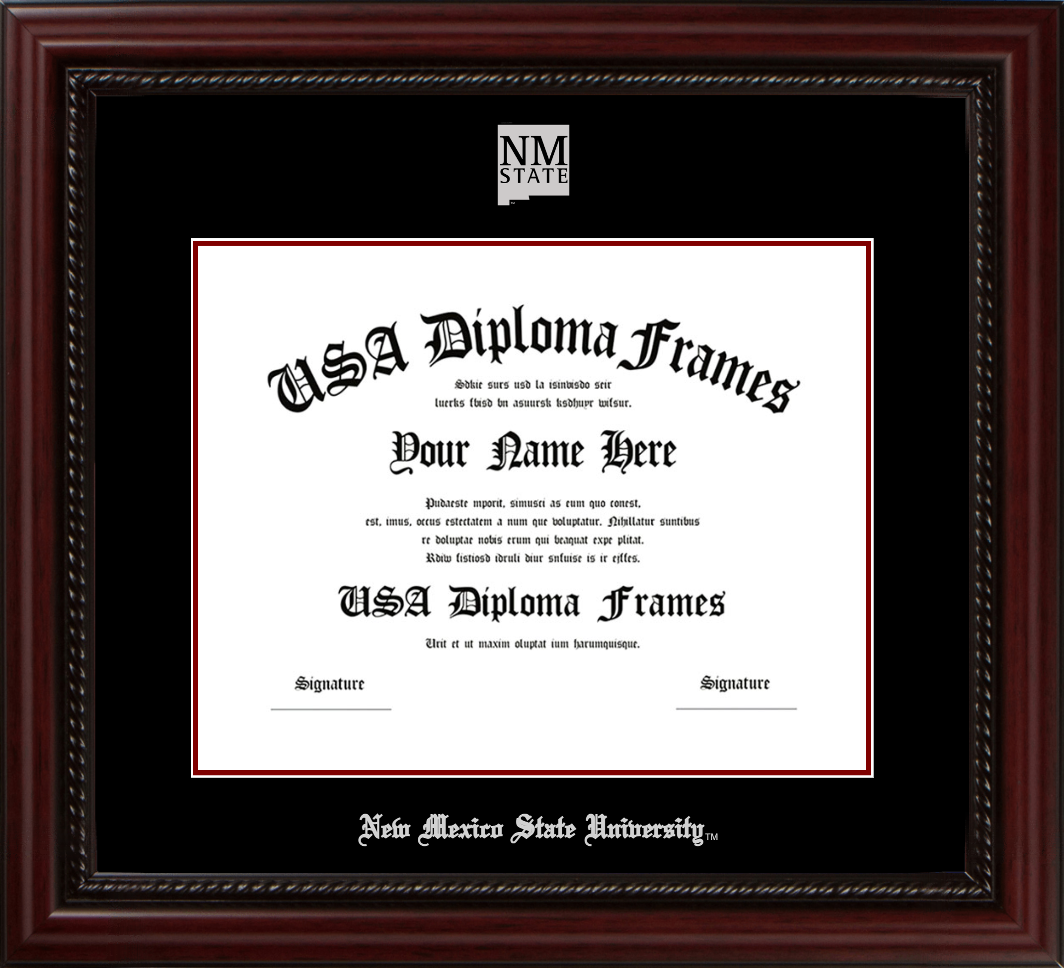 New Mexico State University Diploma Frame – Executive Cherry Rope – Black and Maroon Mat – Silver Seal