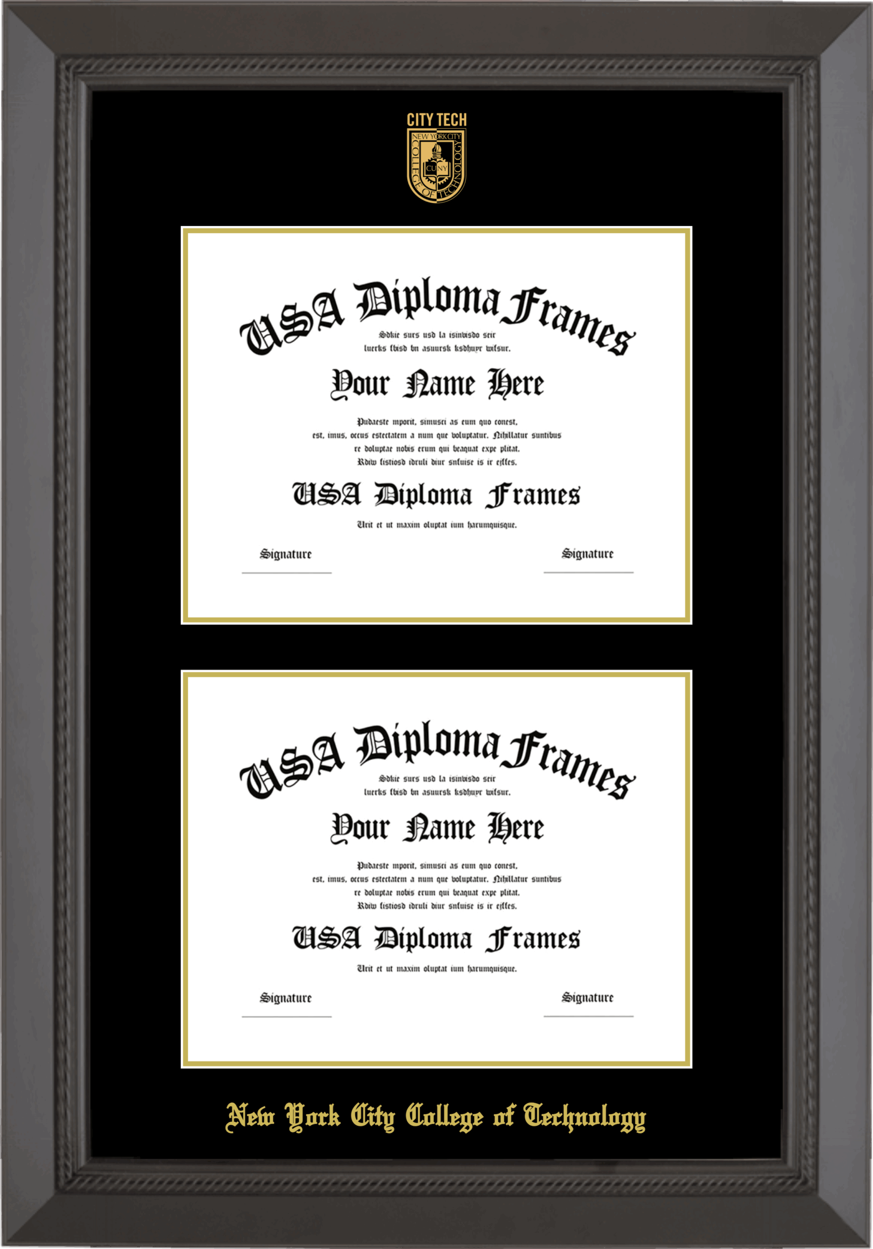 New York City College of Technology Double Diploma Frame – Double Document – Black Rope – Black and Gold Mat