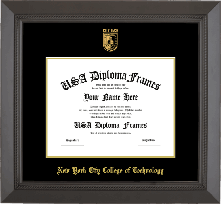 New York City College of Technology Diploma Frame – Black Rope – Black and Gold Mat